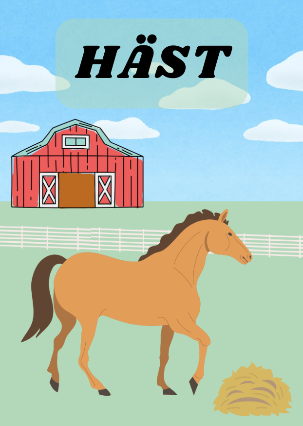 Planscher på vanliga bondgårdsdjur: häst, ko, hund, katt, gris, höna, get och får. Kan användas under temaarbete med bondgården för att synliggöra djuren för eleverna.