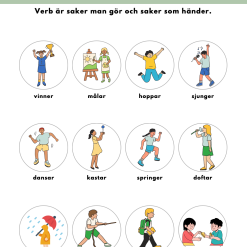 Tre posters som tydliggör vad grunderna i adjektiv, substantiv och verb är. Blir bäst om de skrivs ut i A3 och i färg.