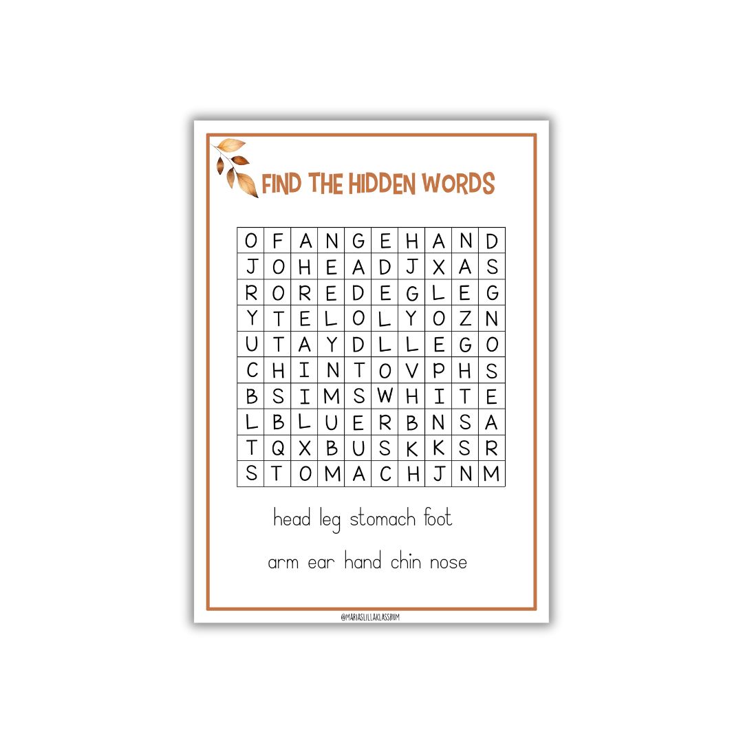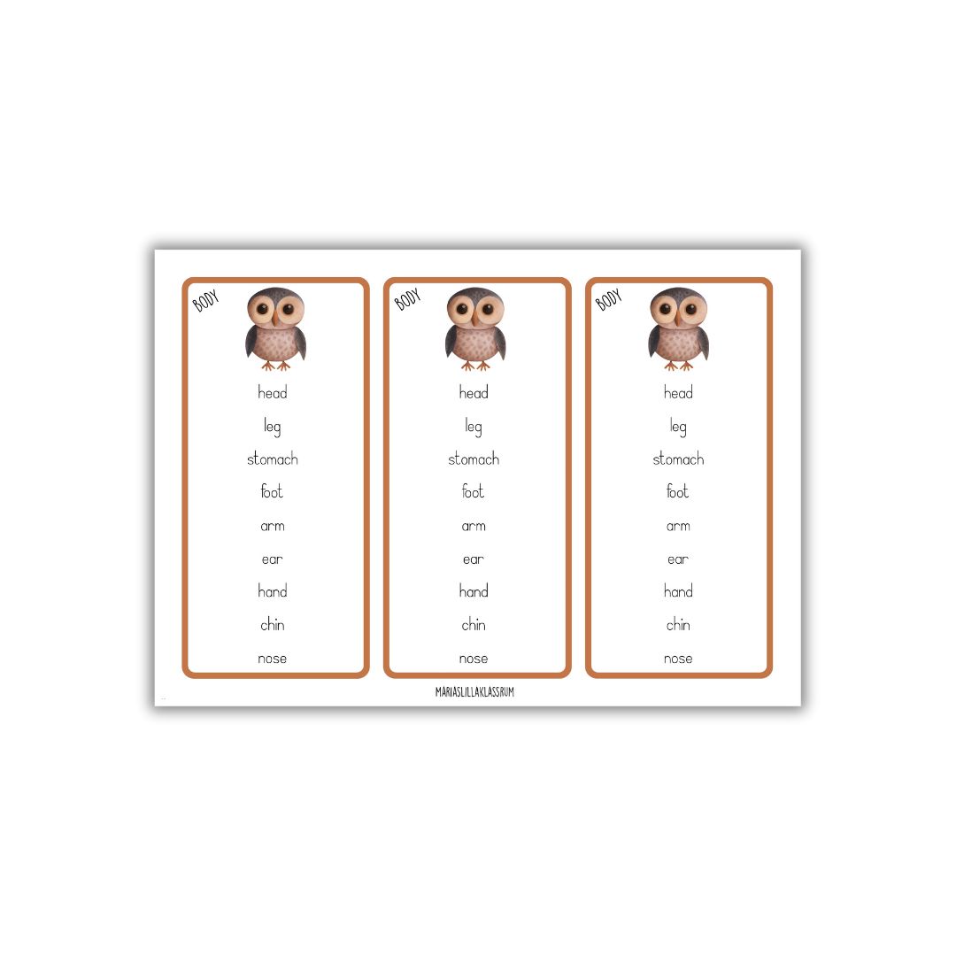 7. Läs och träna på orden. Kan användas som bokmärke eller ta med hem och träna.