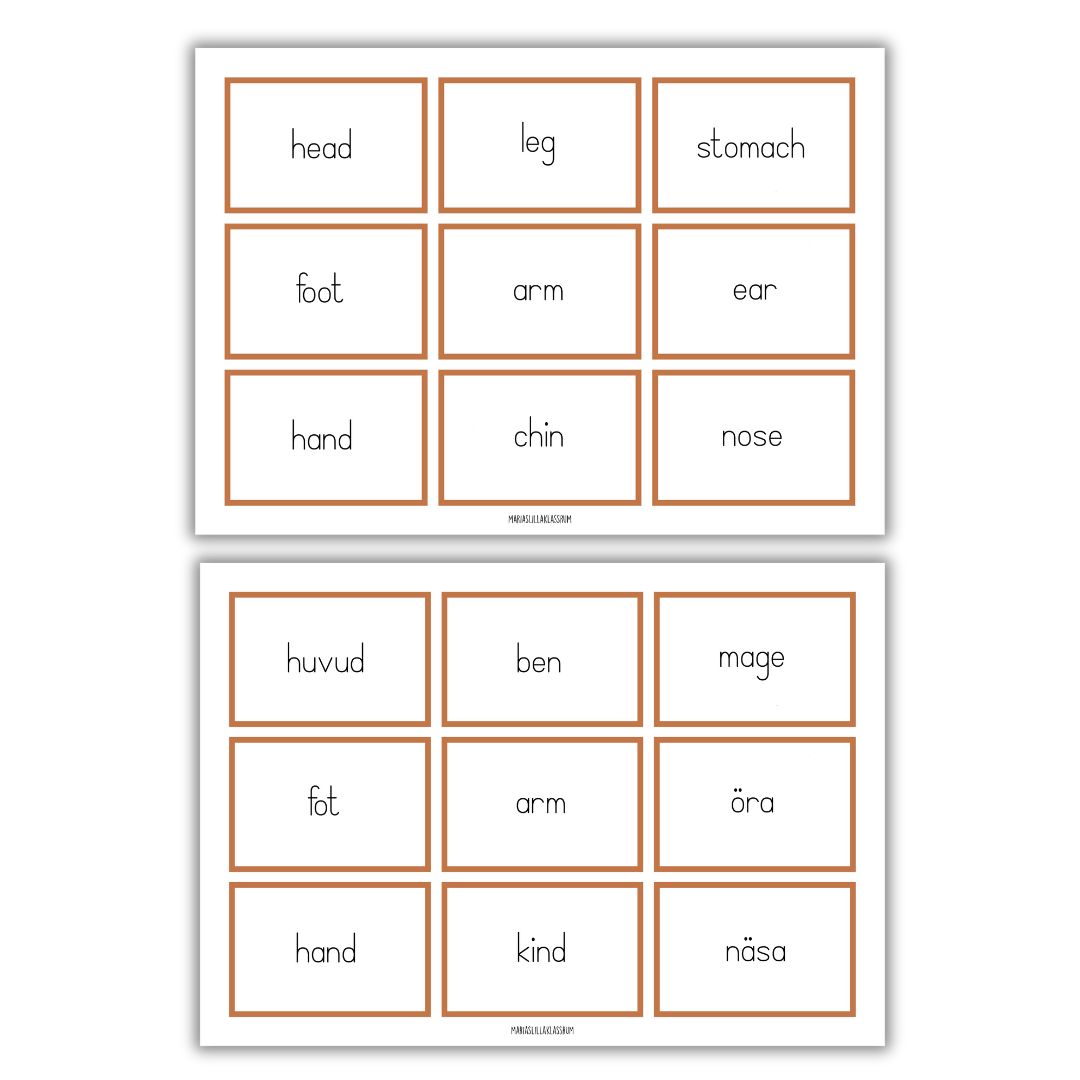 6. 9 svenska ord att laminera och klippa ut.