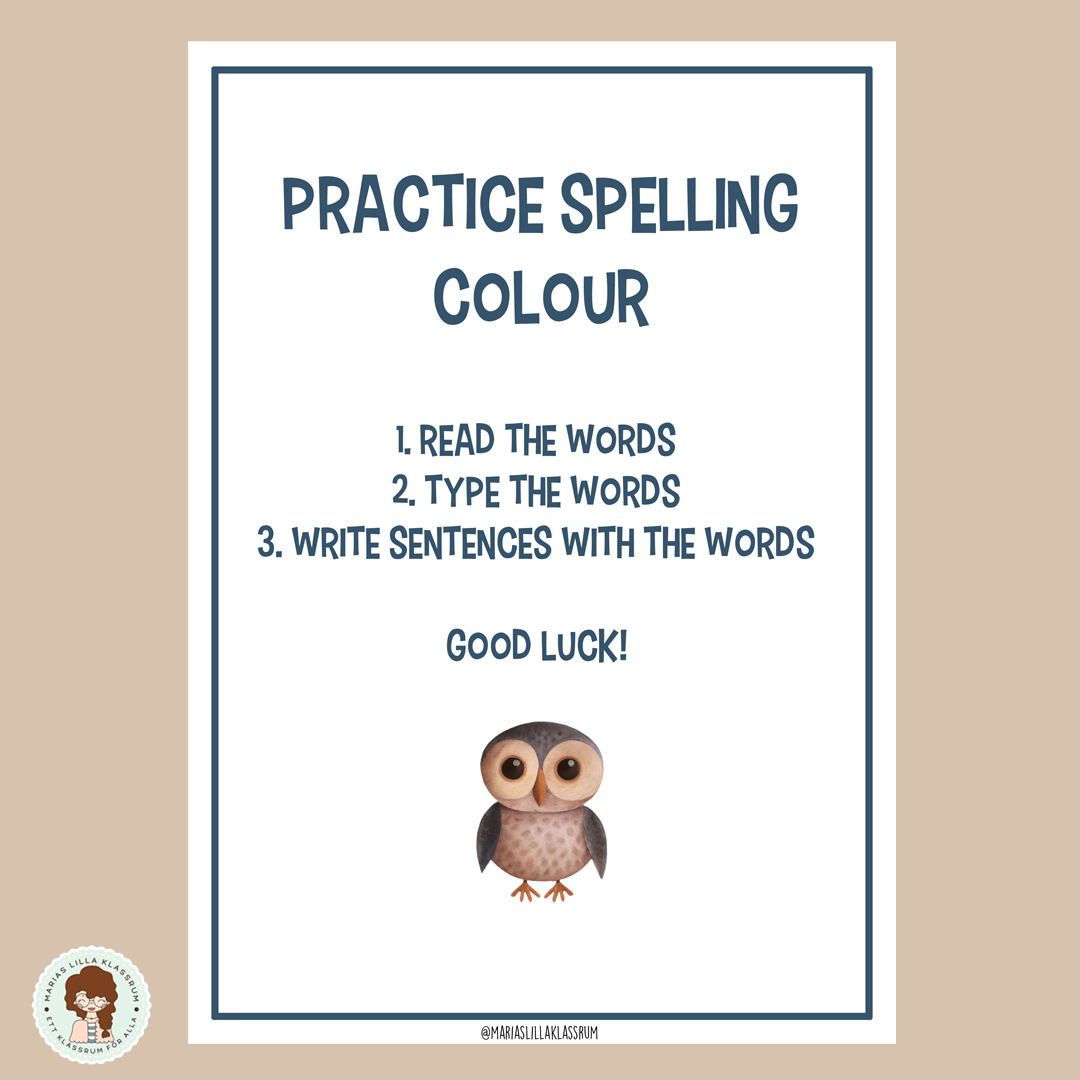 7. Läs och träna på orden. Kan användas som bokmärke eller ta med hem och träna.
