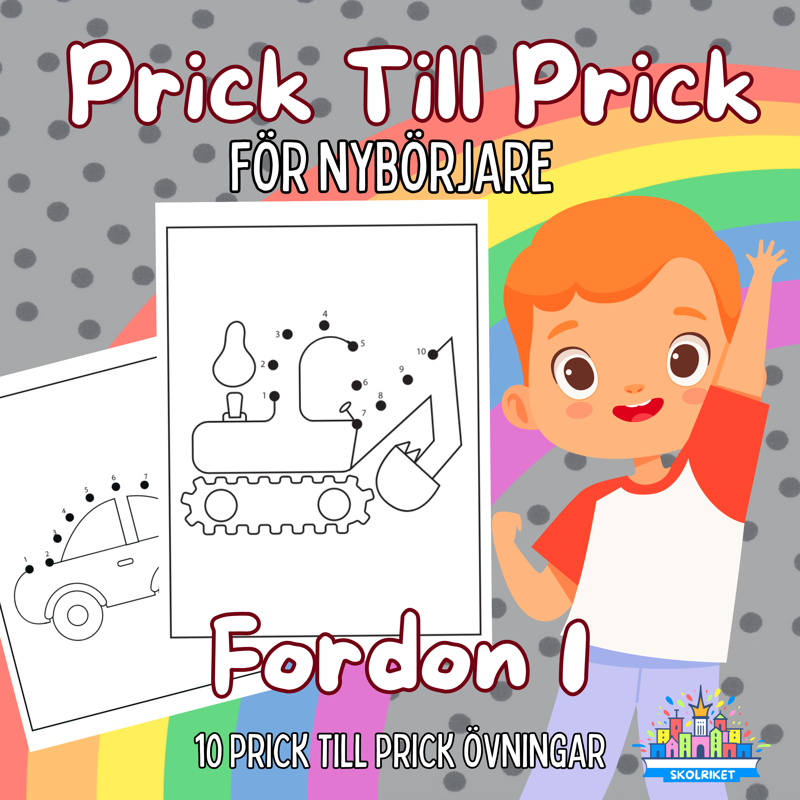10 sidor prick – till – prick med fordon som tema, perfekt för små nybörjare.