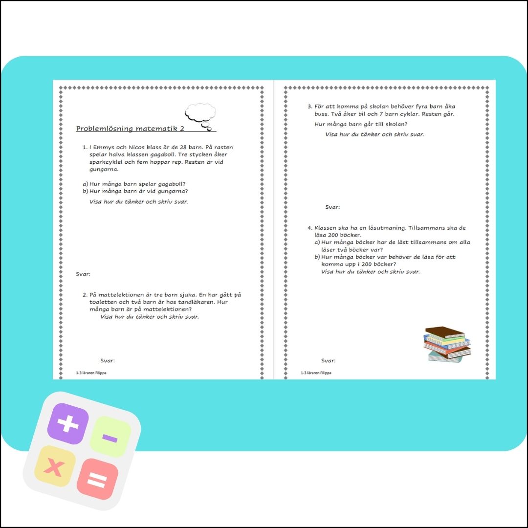 Problemlösningsuppgifter för år 3. (Kan även passa elever i år 4 som behöver öva mer på problemlösning).
