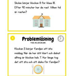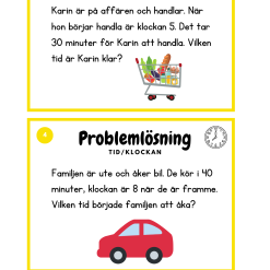 Problemlösning tid/klockan. Innehåller 30 stycken olika kort att skriva ut och laminera.