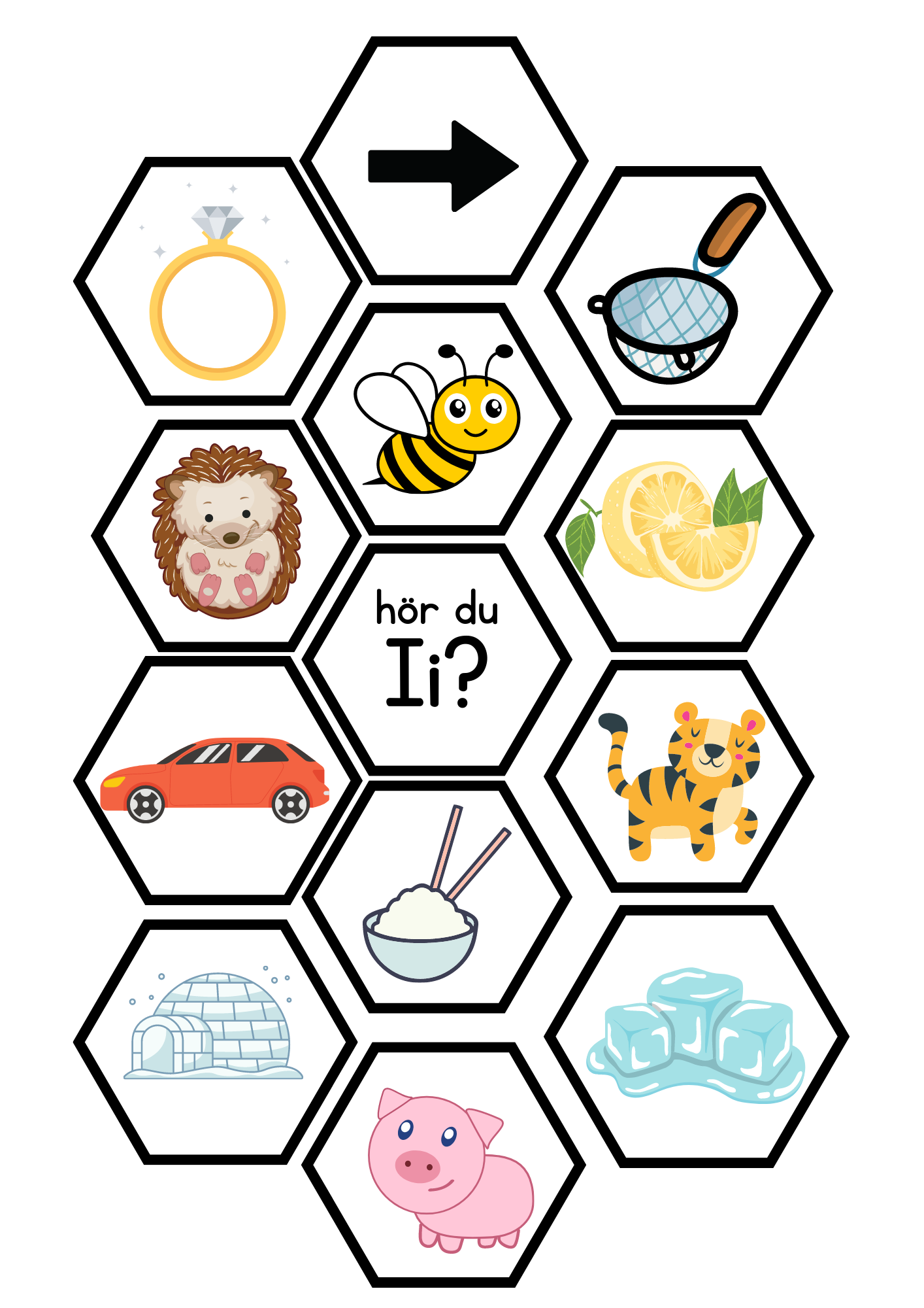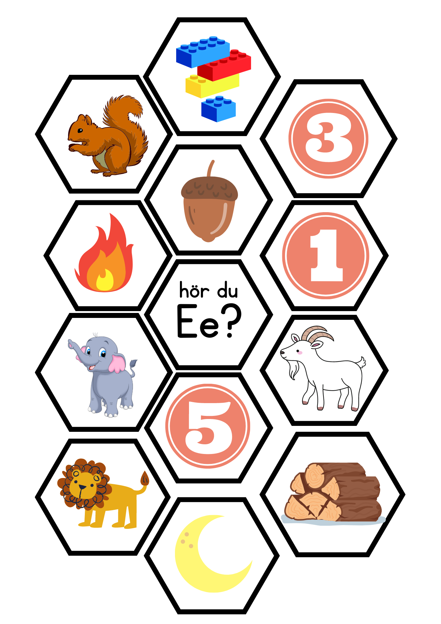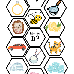 Pussel med bokstavsljud med bokstäverna EIYÄÖ. Till varje bokstav hör 12 bildkort. Skriv ut och laminera, blanda ihop alla eller delar av korten och låt eleverna lägga rätt bild till rätt bokstavsljud.