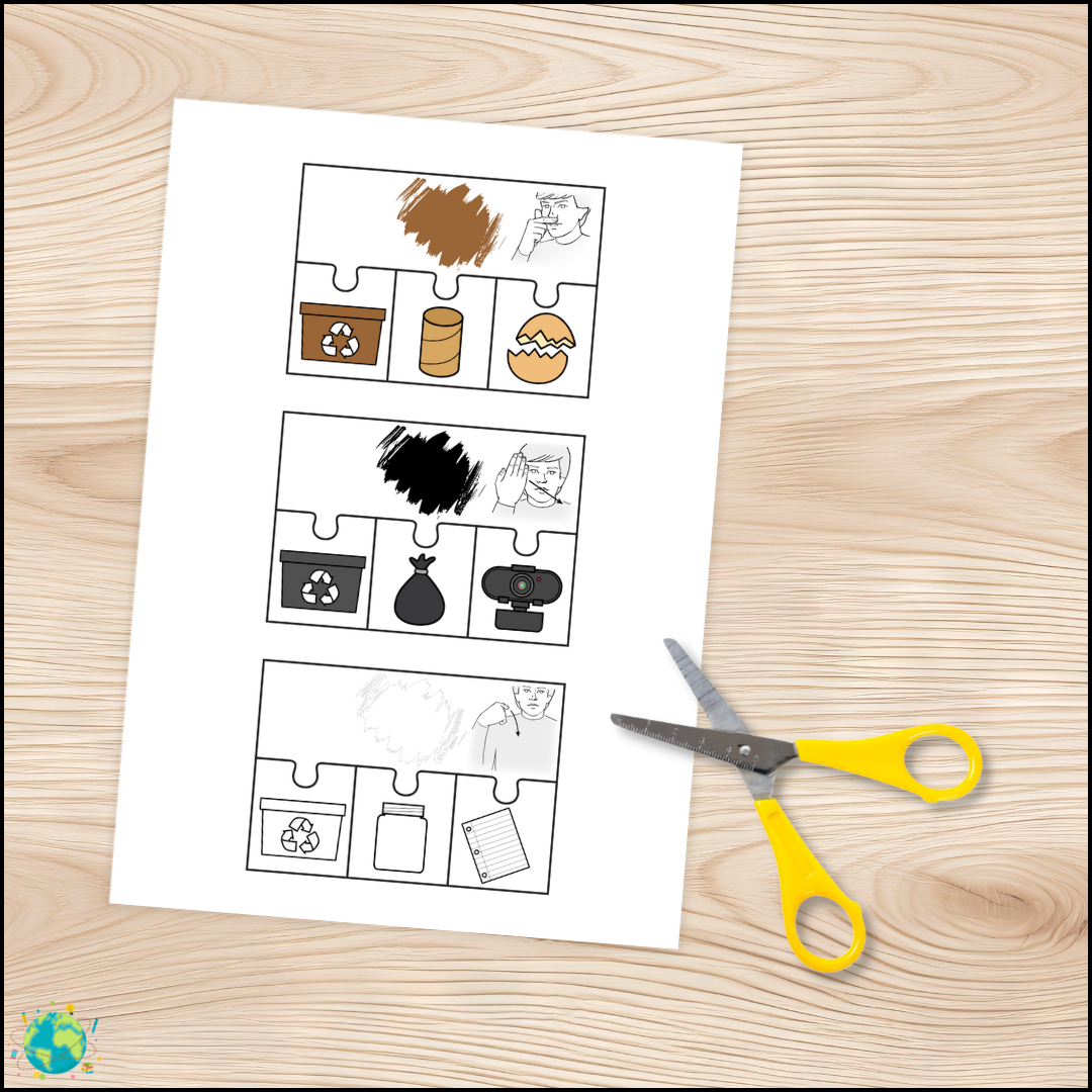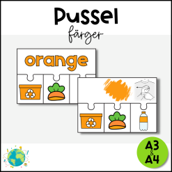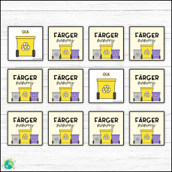 En kreativ uppgift där eleverna ska pussla ihop rätt sopor med rätt färg.