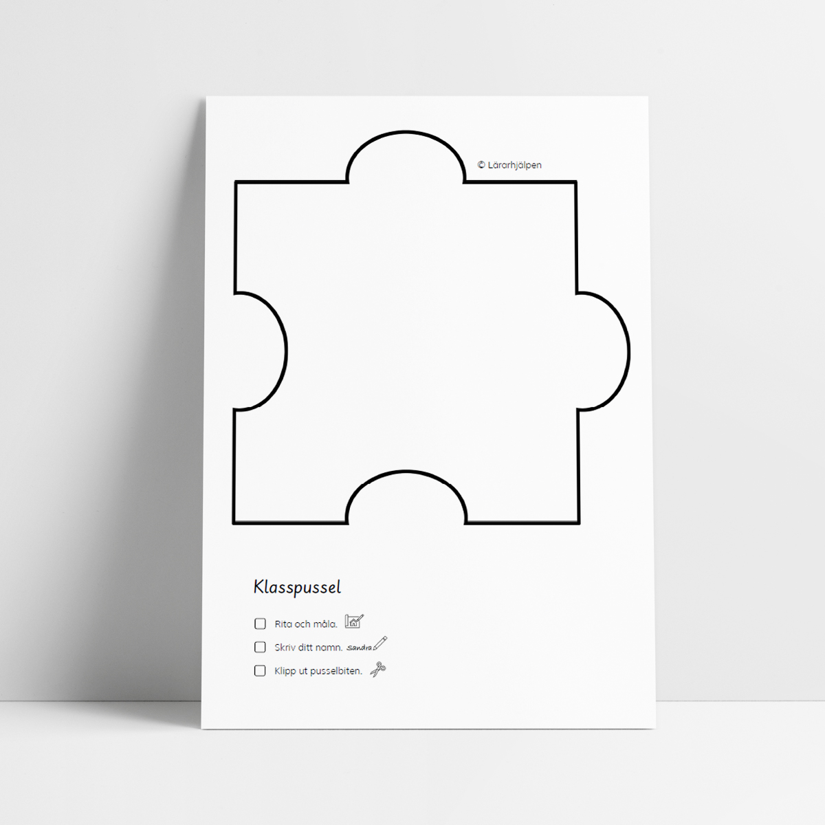 ”Som ett pussel är vi, där alla bitar behövs” sjunger Perla i sin låt ”Alla är lika mycket värda”. Skapa varsin pusselbit och sätt ihop till ett klasspussel. Sätt upp klassens pussel på synlig plats i klassrummet. Du kan själv anpassa vad eleverna ska måla på sin pusselbit. Det kan vara ett självporträtt, namn, något eleven gillar, mönster, abstrakt eller vad som än passar din elevgrupp.