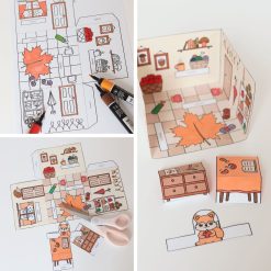 Pyssla ett dockhus i 3D. Färglägg, klipp ut och limma ihop. Alla rum i serien passar med varandra, bygg ut och mixa som du vill i ditt dockhus.