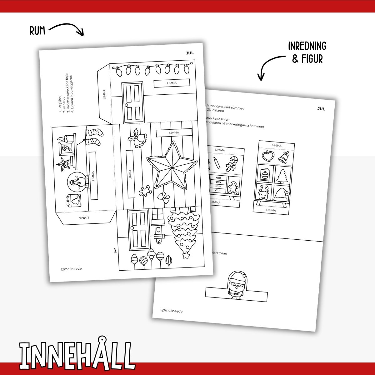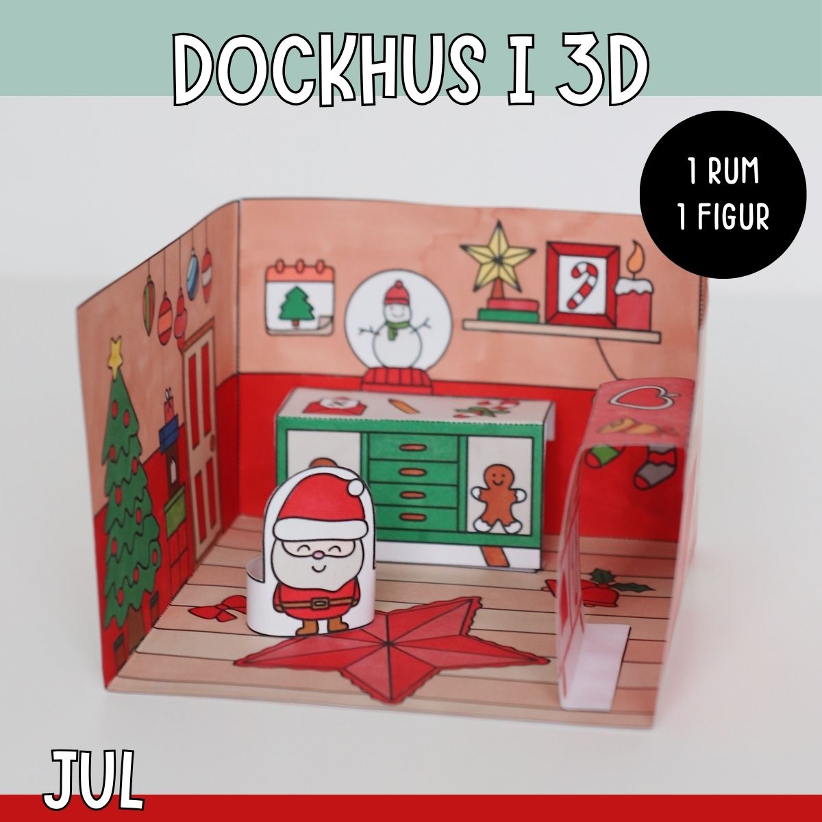 Skapa ett magiskt julrum till ditt Dockhus i 3D! Eleverna färglägger, klipper och limmar ihop sitt eget rum med tillhörande figur, en härlig kombination av kreativt pyssel och konstruktion.