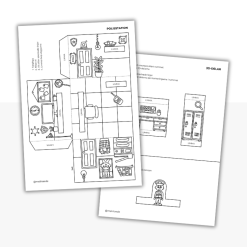 Pyssla ett dockhus i 3D. Färglägg, klipp ut och limma ihop. Alla rum i serien passar med varandra, bygg ut och mixa som du vill i ditt dockhus.