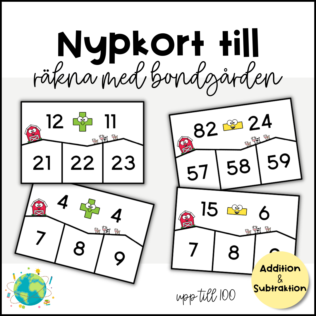 148 nypkort med addition och subtraktion till temat, bondgården.