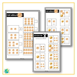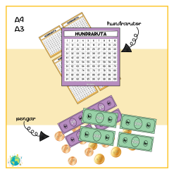 Till häftet får du även pengar och hundrarutor till dina elever och tavlan i klassrummet. För längre hållbarhet bör de lamineras.