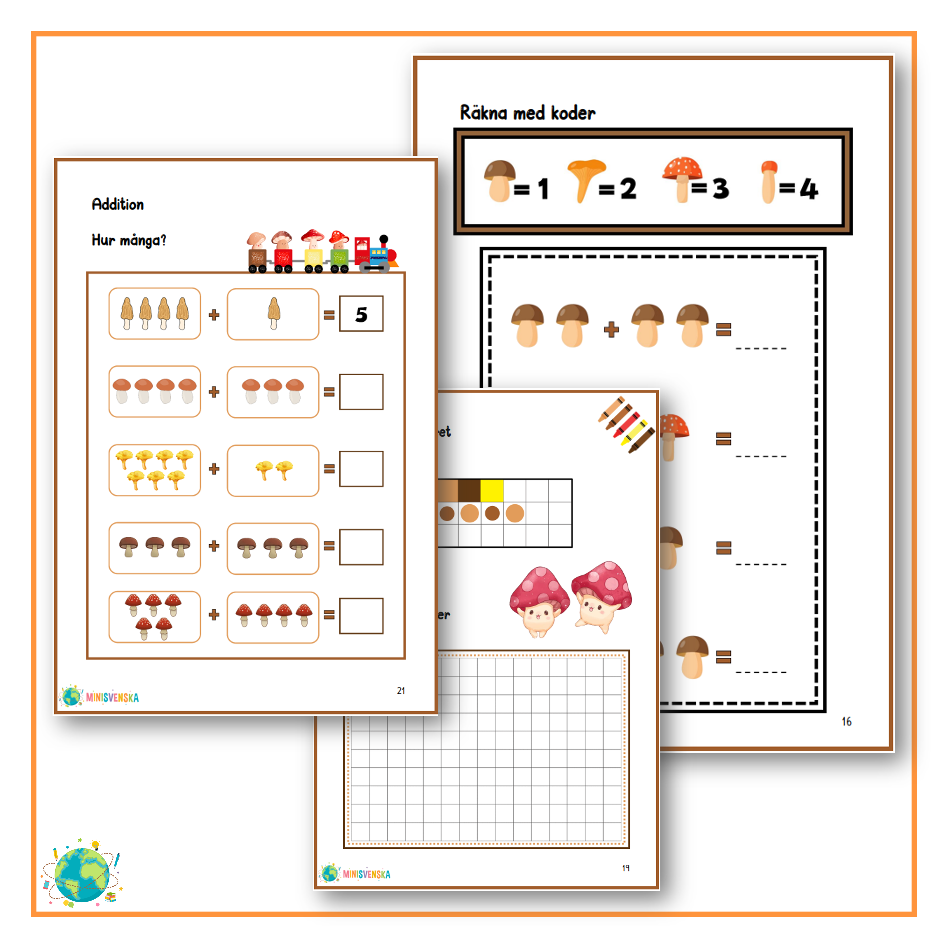 Temainspirerat material där eleverna tränar på varierande uppgifter i matematik.