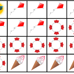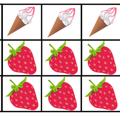 Materialet tränar på att räkna från 0 till 10. Barnet ska lägga sifferkorten överst och sedan lägga sakkorten under. kepskorten är tre och ska ligga under siffran 3.