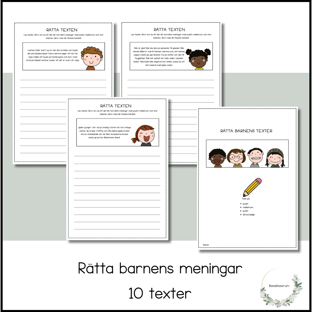 1o texter där eleverna får träna på meningsbyggnad.