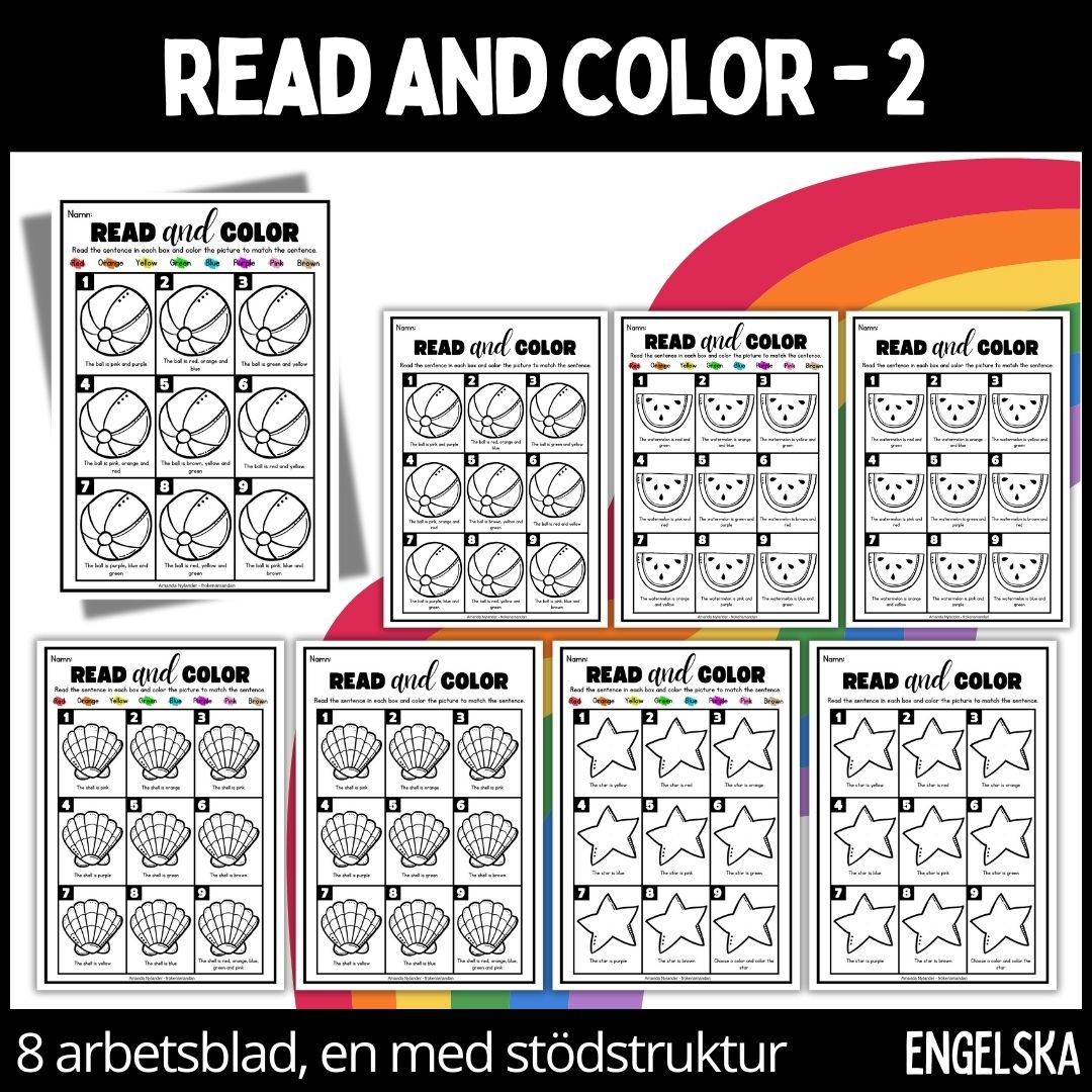Detta ingår i Read and color - lätt - 8 arbetsblad - 2