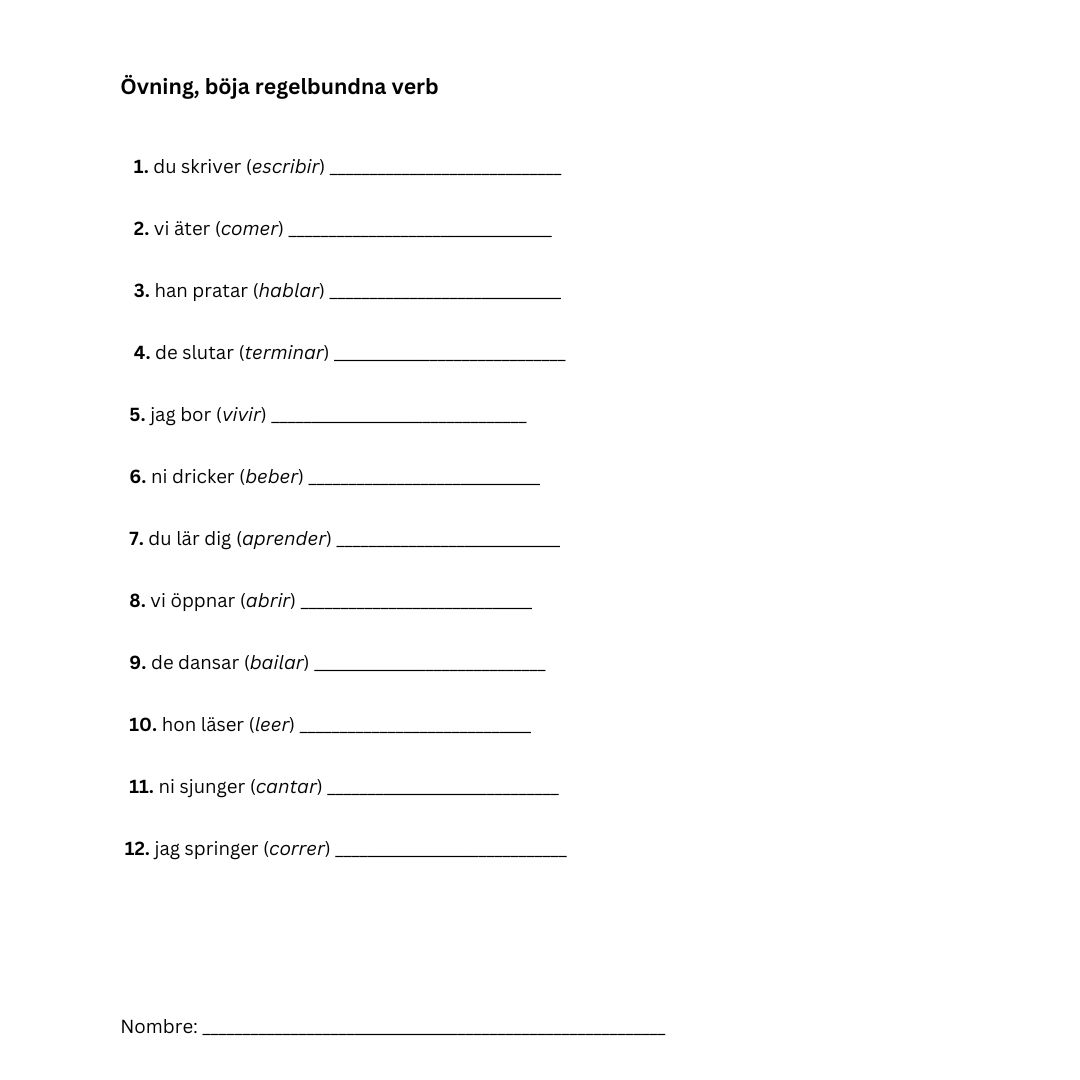 Bli först med att recensera ”Regelbundna verb i presens, spanska” Avbryt svar