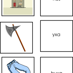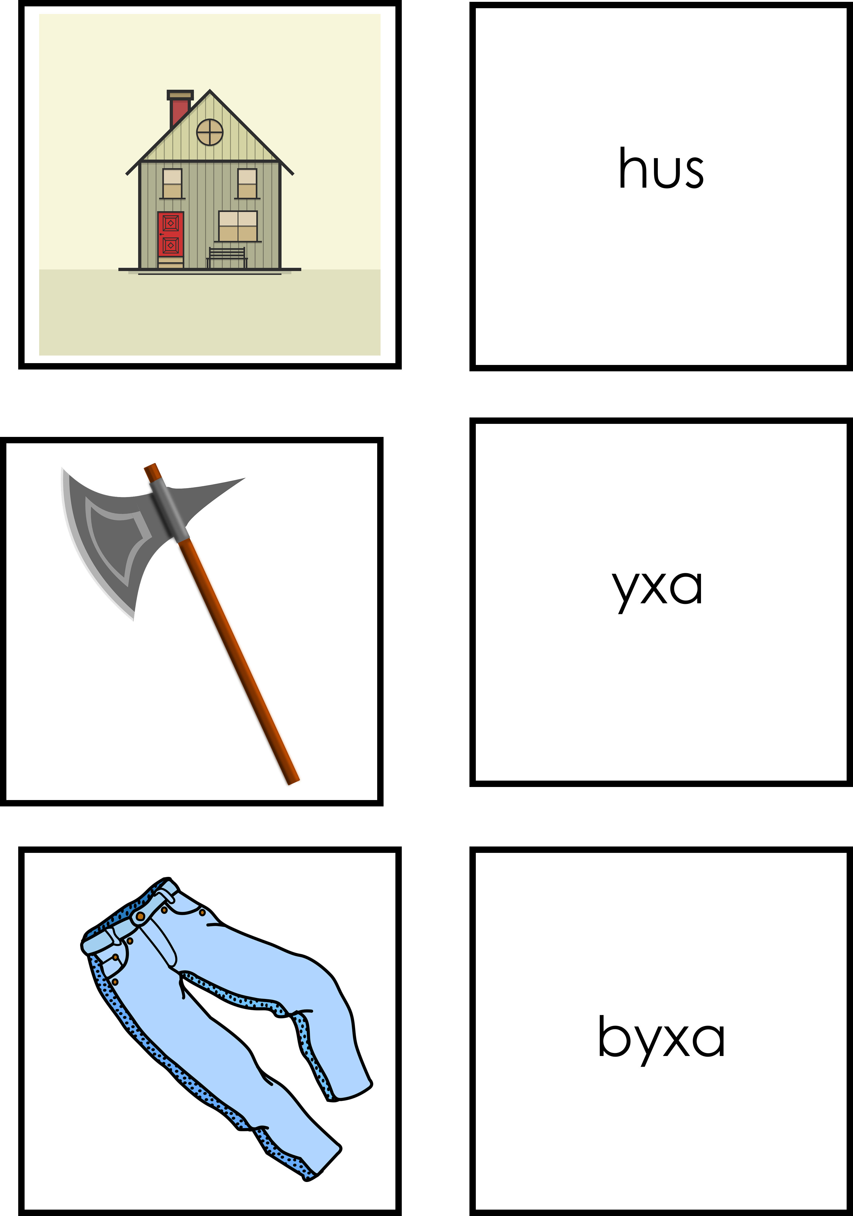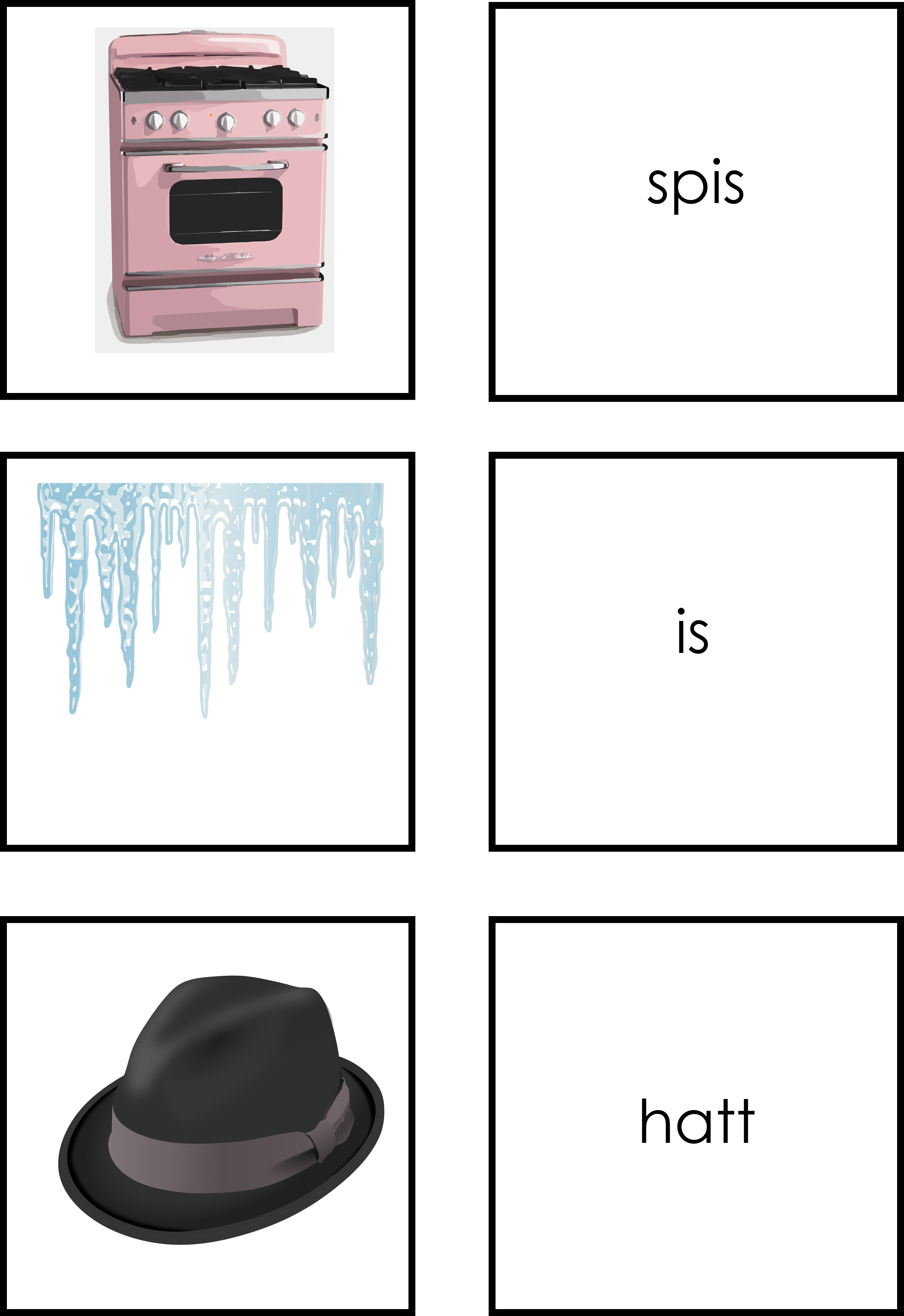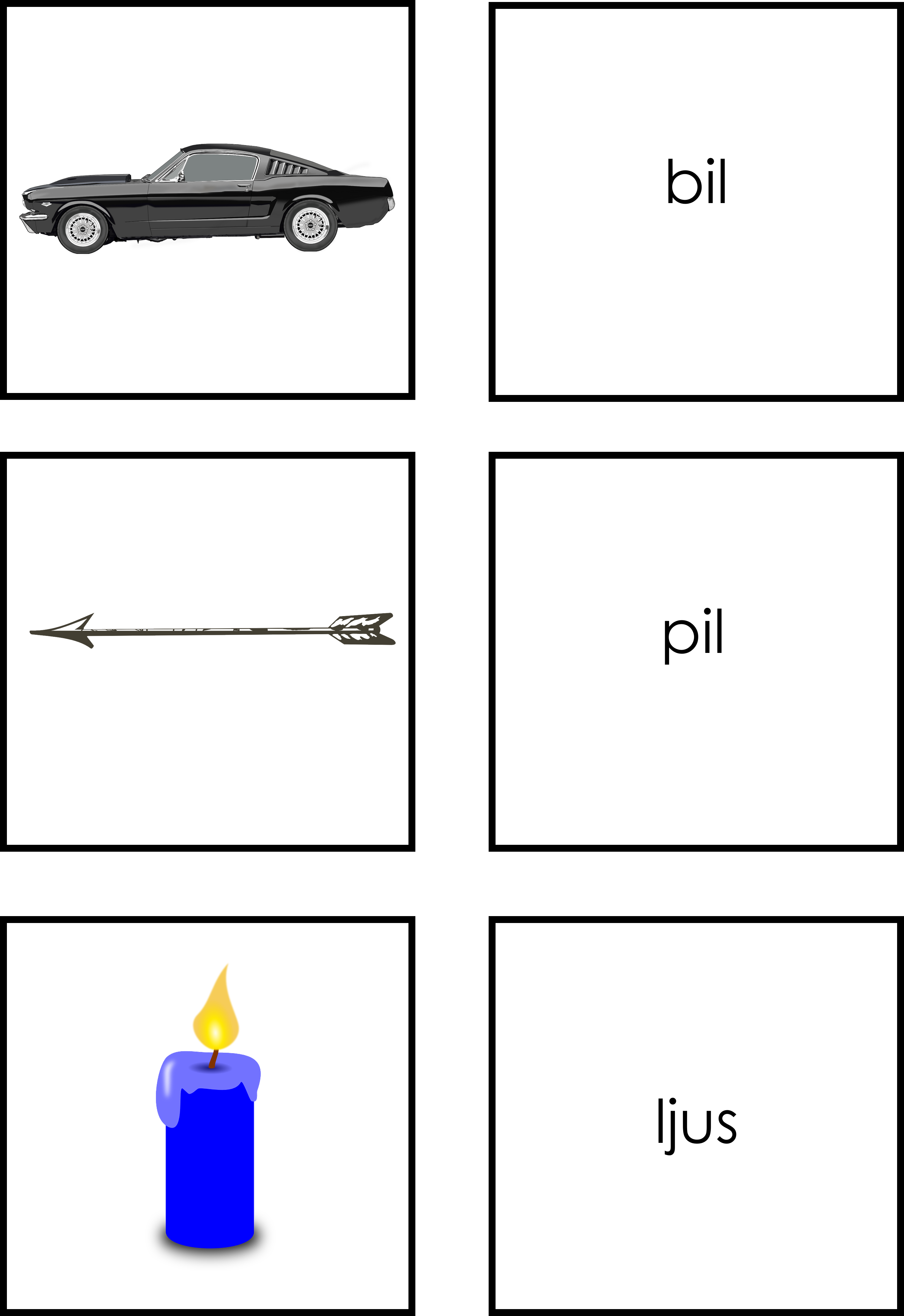 Materialet är ett sorteringsmaterial där barnet ska träna på rim och läsning. Du kan även klistra korten på färgat papper innan du laminerar och använda det som rimmemory.