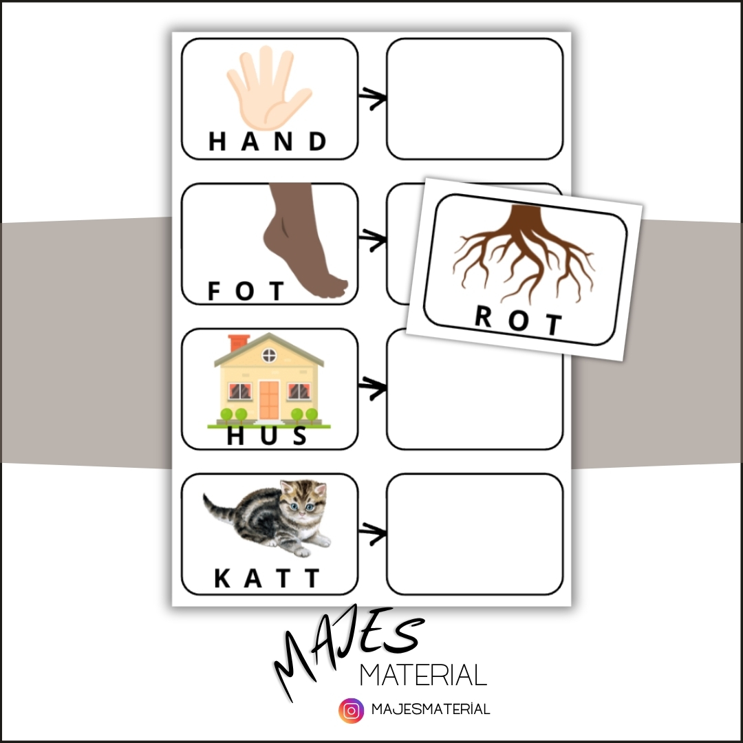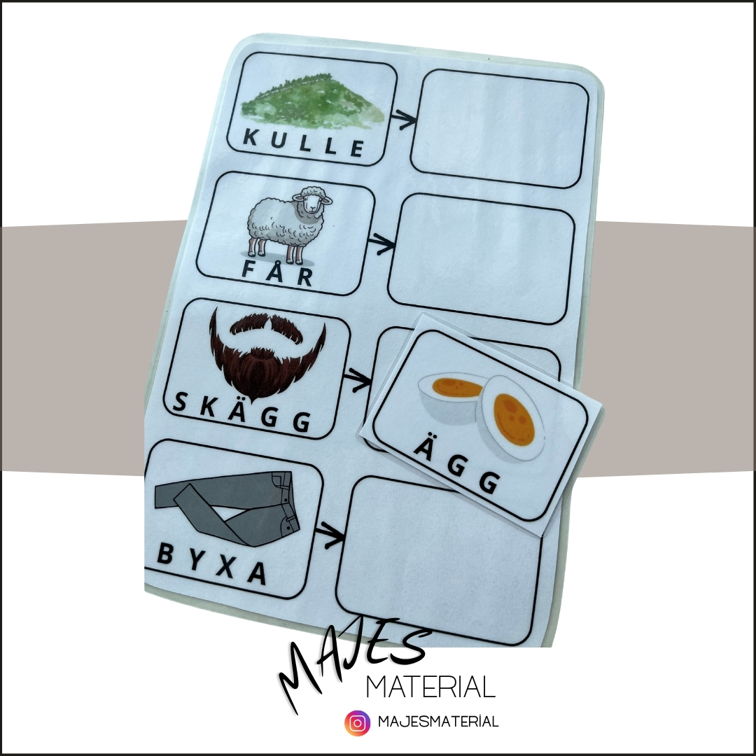6 olika rimbrickor med fyra rim på varje blad att använda för att öva på svenska rim med barnen.