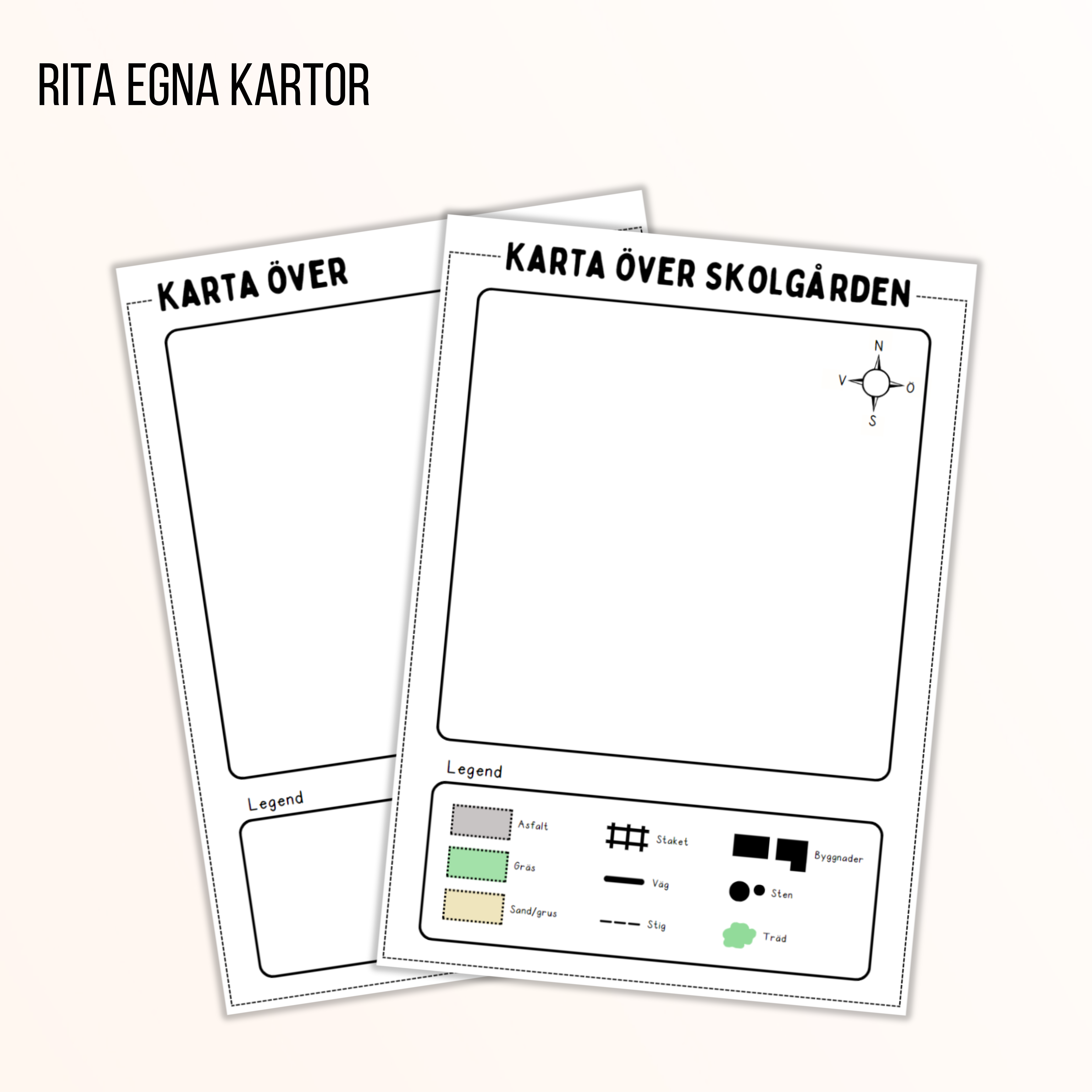 Låt eleverna rita egna kartor över till exempel skolgården. Kartorna fås i två varianter, samt med och utan legend/teckenförklaring.
