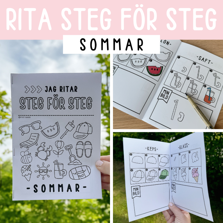 Lär dig rita motiv med tema sommar steg för steg. Innehåller 14 motiv, plats att riat själv och möjlighet att färglägga bokens framsida som en målarbild.