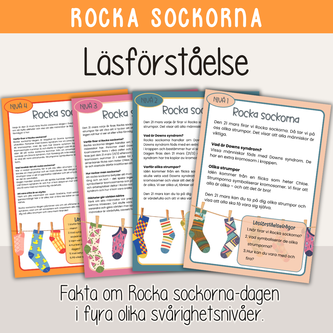 - Faktatext om vad Rocka sockorna-dagen är och varför vi firar den. Texten finns i fyra olika nivåer med tillhörande frågor.