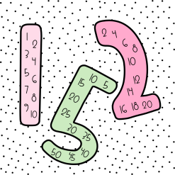 Materialet innehåller 2 ark med siffror och röda prickar, 2 ark med endast siffror samt 60 röda prickar att använda vid övningen.