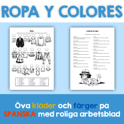 Detta arbetsbladspaket är utformat för att hjälpa elever att lära sig och öva på spanska ord för kläder och färger genom engagerande aktiviteter: