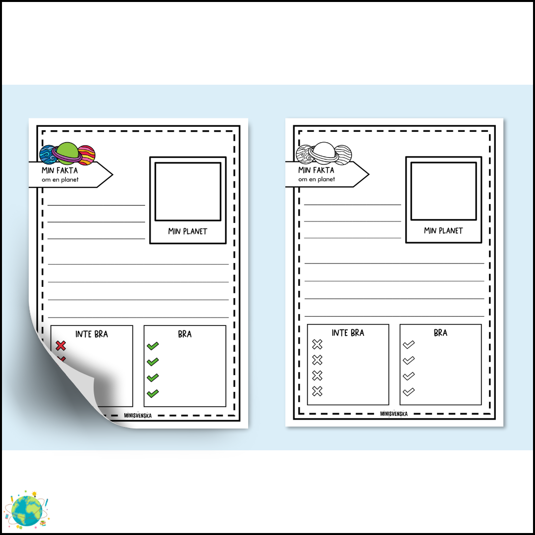 Skriv fakta om en påhittad planet eller en som redan finns.
