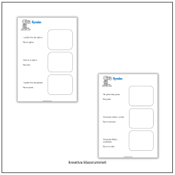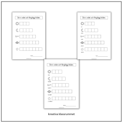 Förslag: Utveckla leken genom att skriva ett ord på baksidan av bilderna som sitter uppsatta. Eleven berättar vad som står när hen lämnar tillbaka bilden.