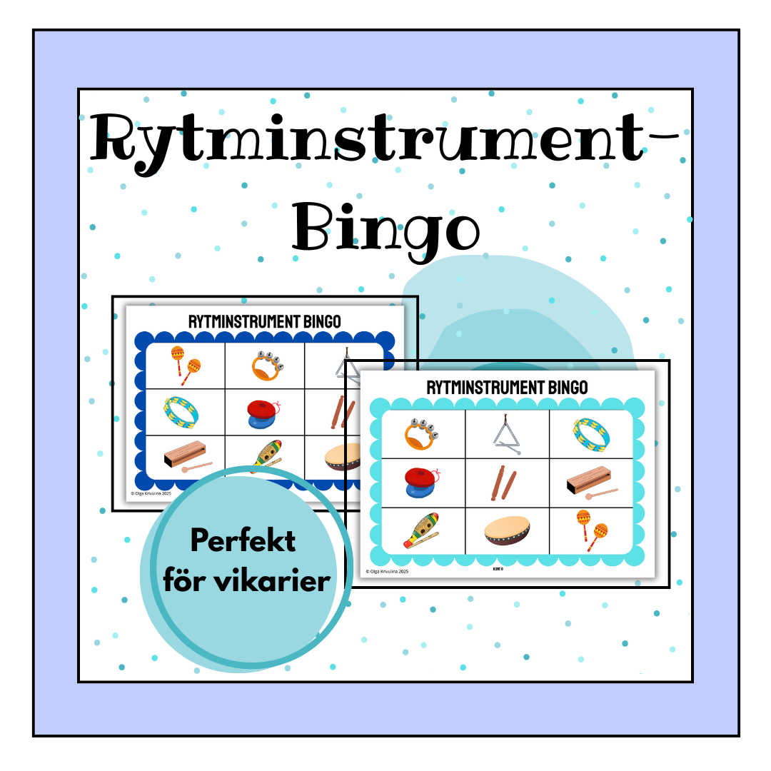 Lista över 9 rytminstrument: maracas, bjällra, träblock, tamburin, gurka, claves, triangel, handtrumma, kastanjetter