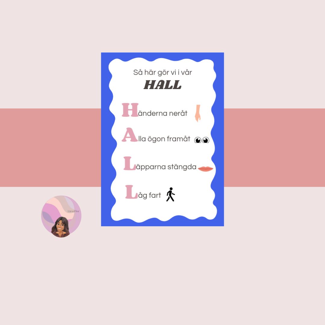 Ge dina elever en tydlig och lekfull vägledning i hur de ska bete sig i hallen med denna färgglada och barnvänliga affisch! Perfekt för förskoleklass och lågstadiet, där visuella stöd hjälper barn att minnas regler på ett positivt sätt.