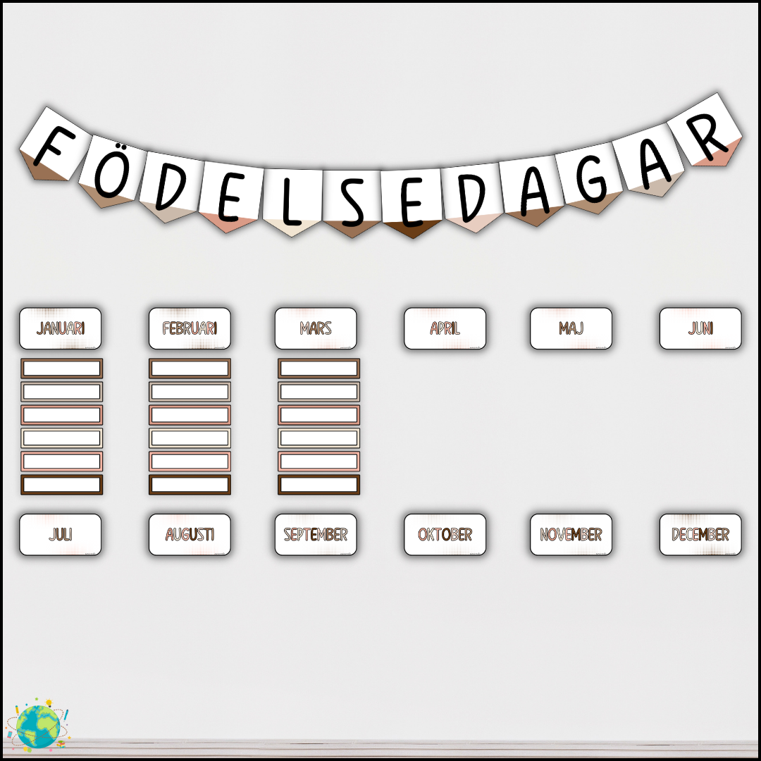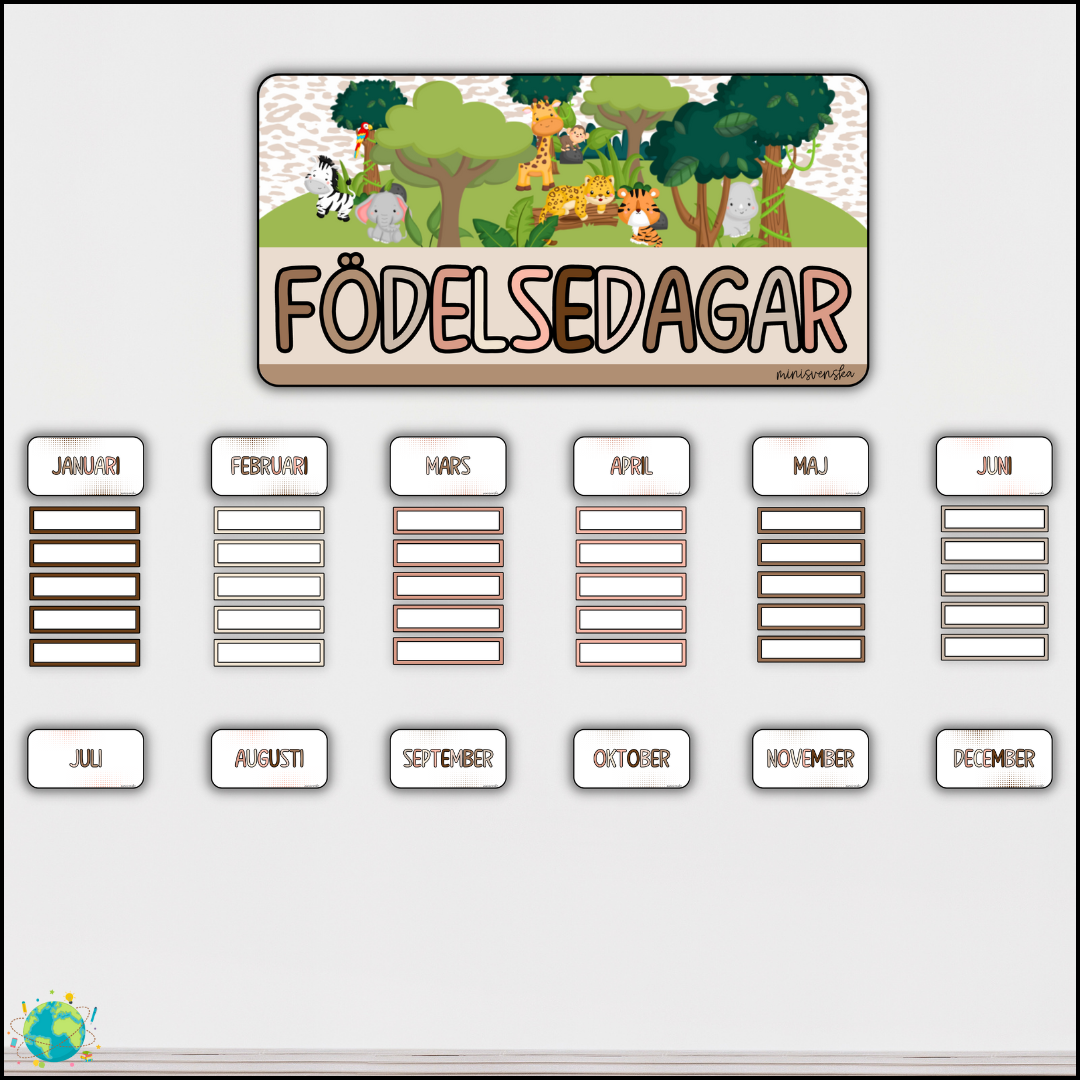 Sätt upp elevernas födelsedagar på väggen med safari-tema.