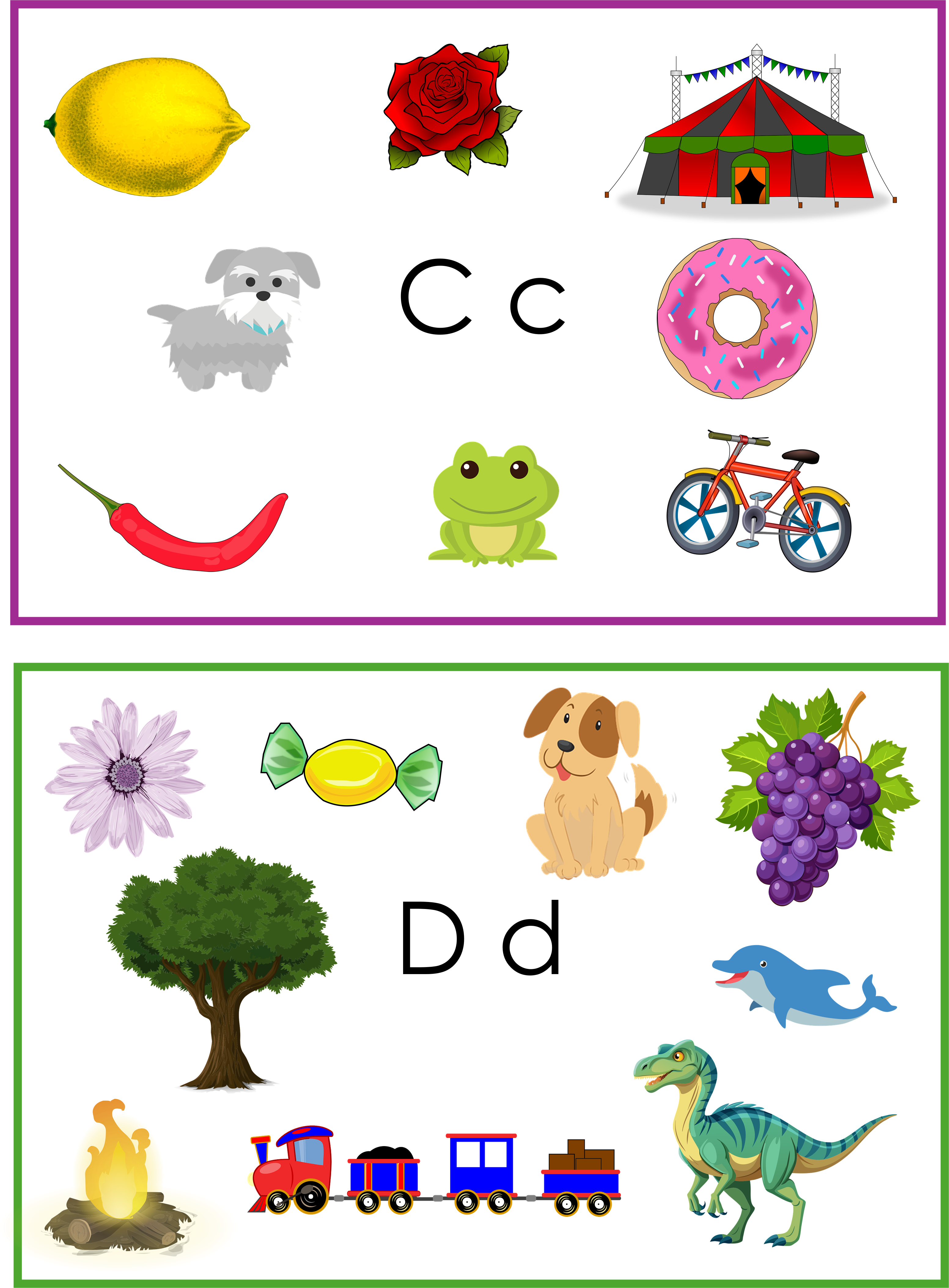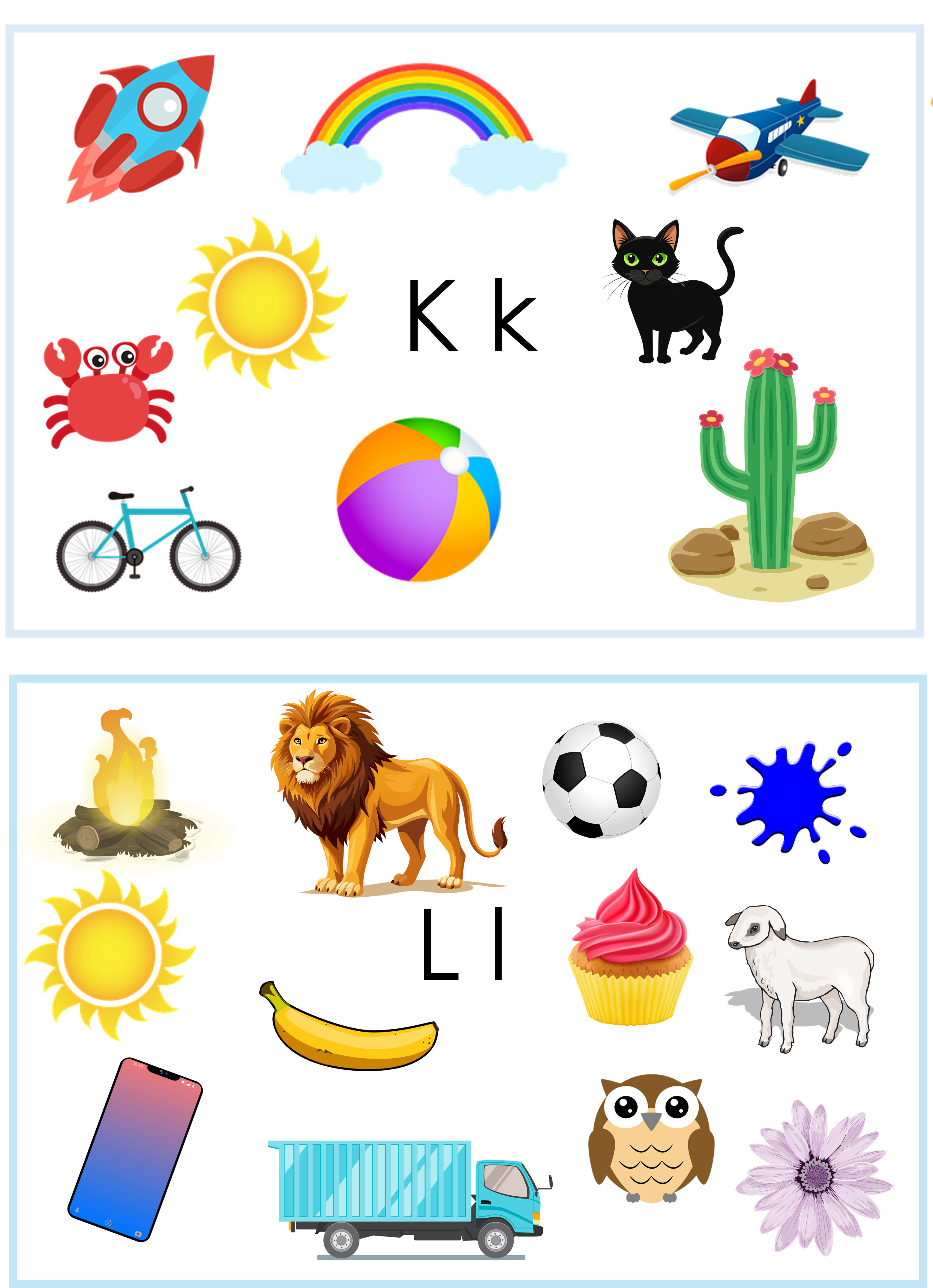Materialet är ett samtalsmaterial. Barnet ska titta på bilden och hitta ord som börjar ljudet som bokstavens som står på kortet. Sedan ska de hitta fler ord där de här ljudet på bokstaven.