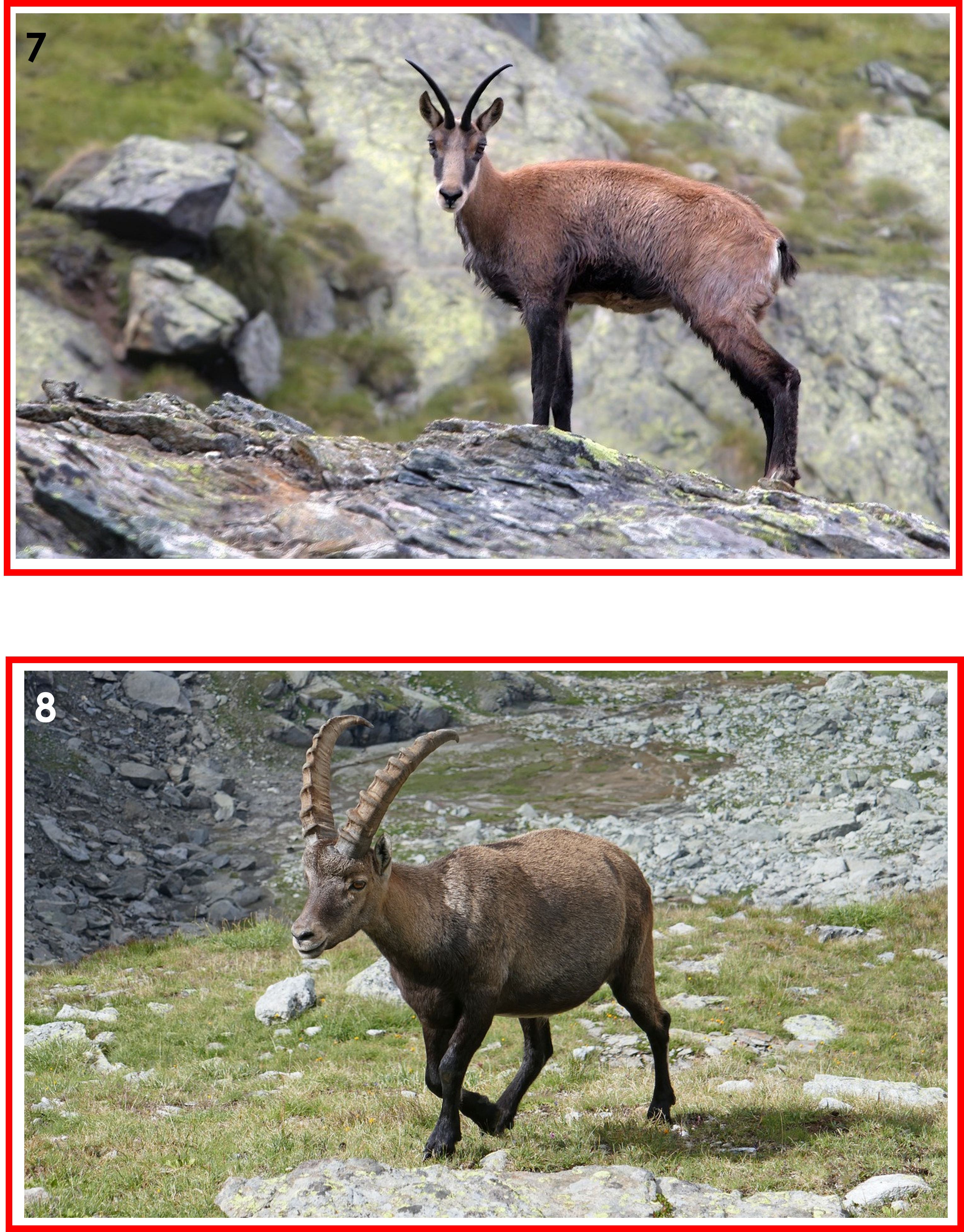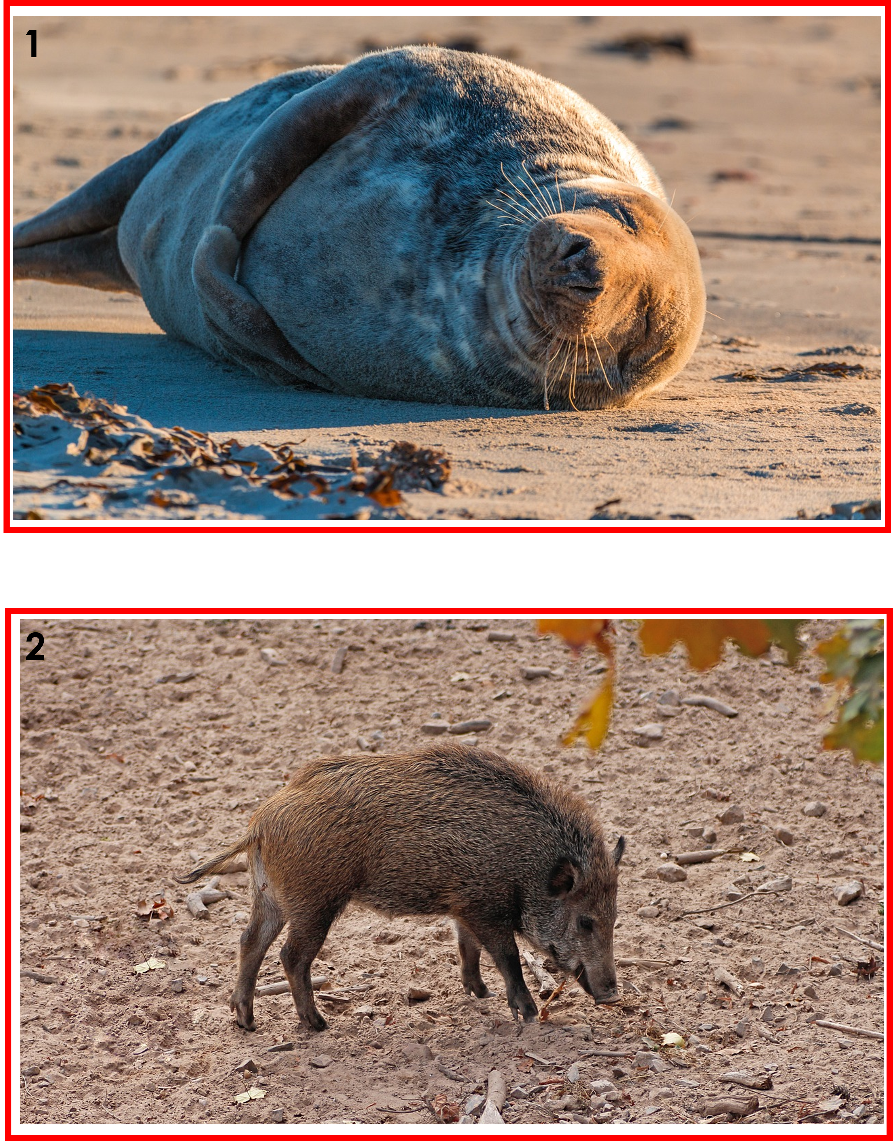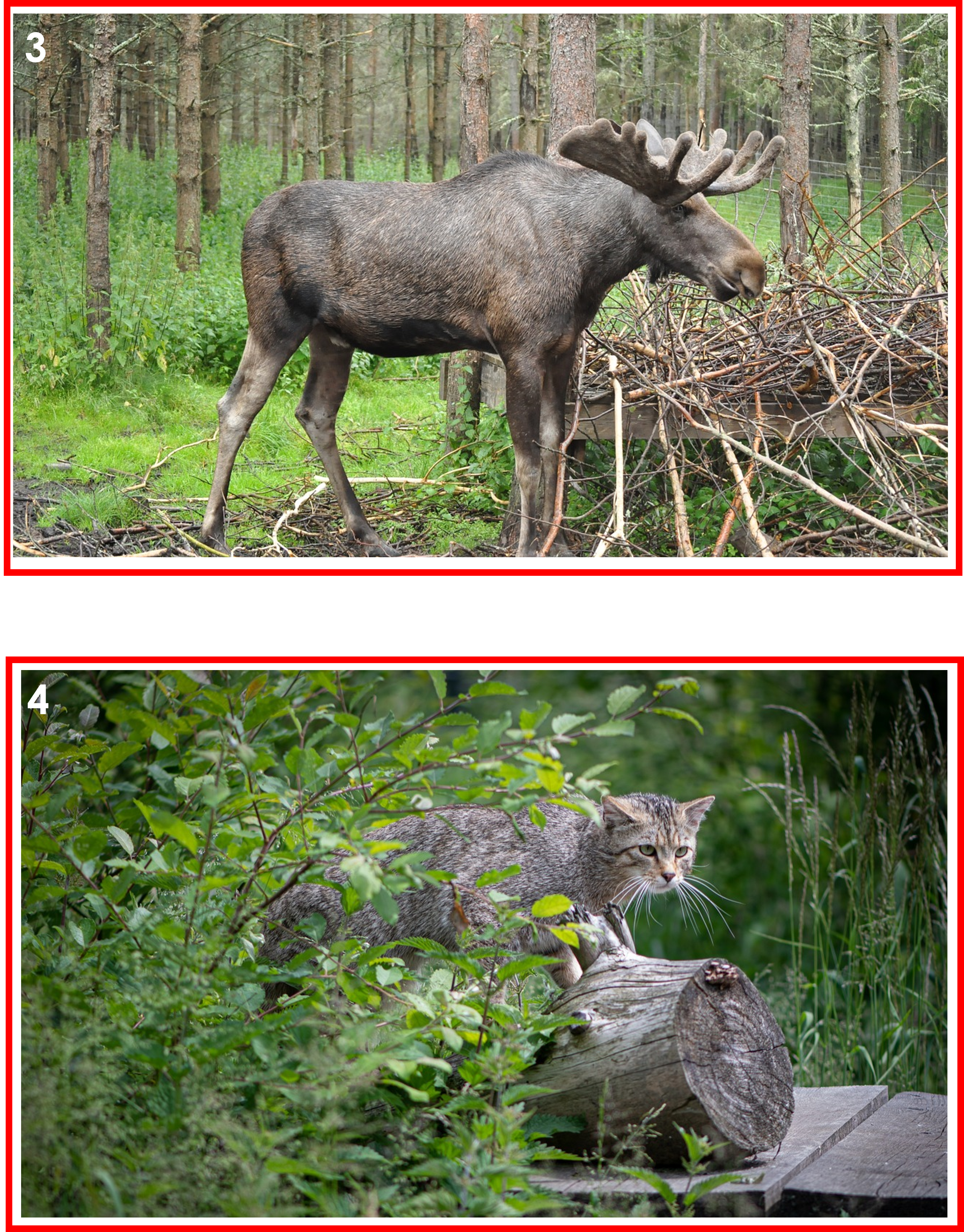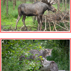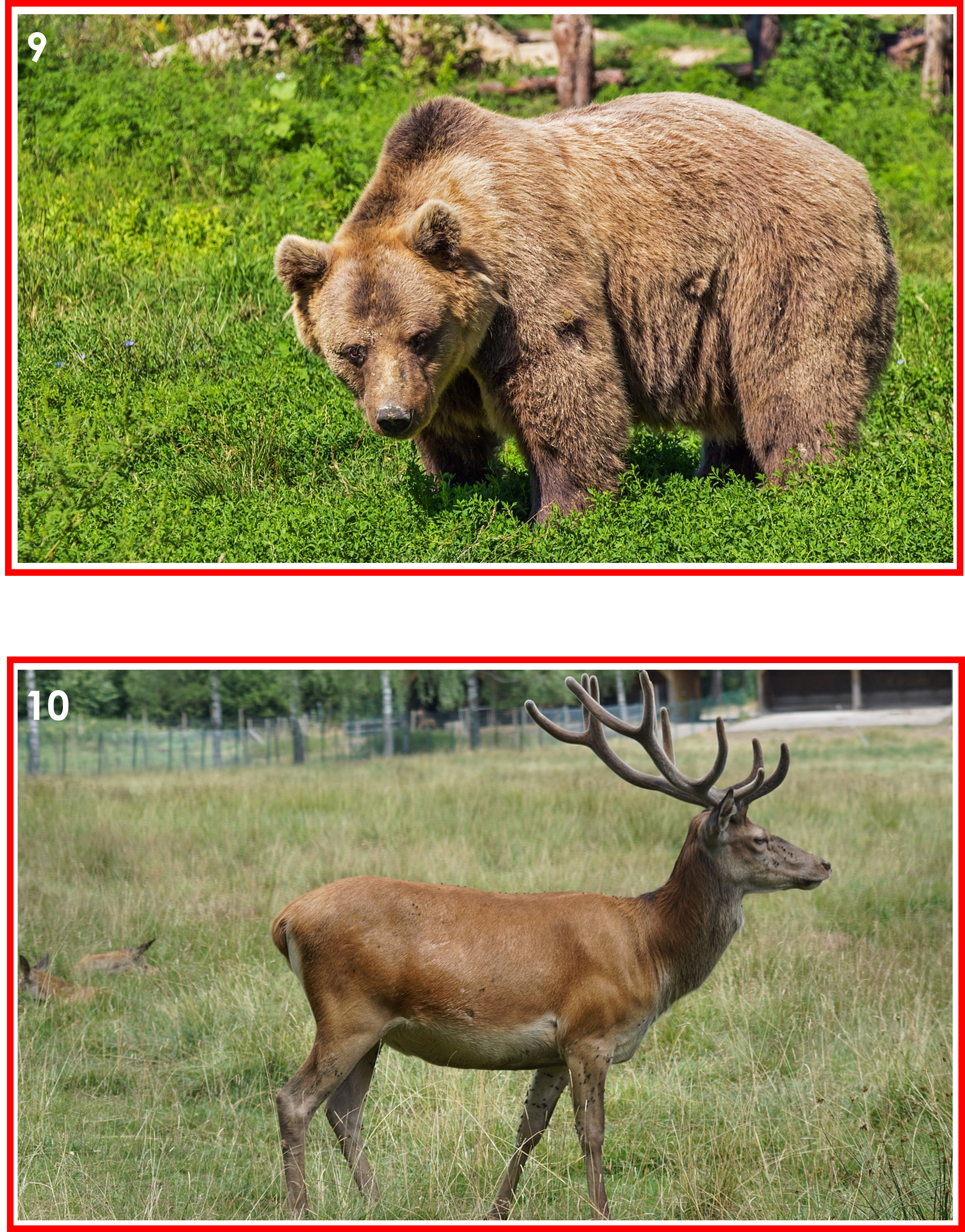 Materialet innehåller 21 bilder på djur med röd ram, 21 bilder på djur med svart ram och ett innehållskort. Sammanlagt 42 bilder.