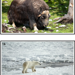 Materialet är ett samtalsmaterial om djur som lever i Nordamerika. Det finns ett set med kort, där korten har en orange ram då det är Nordamerikas färg enligt Montessori. Men även ett set med svart ram så att man kan använda dem tillsammans med djur från andra världsdelar.