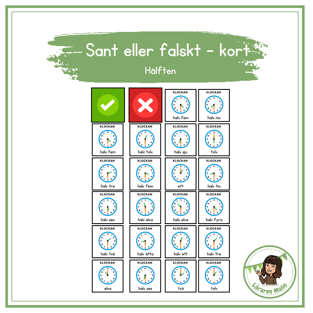 Träna på analoga klockan med dessa sant eller falskt kort.