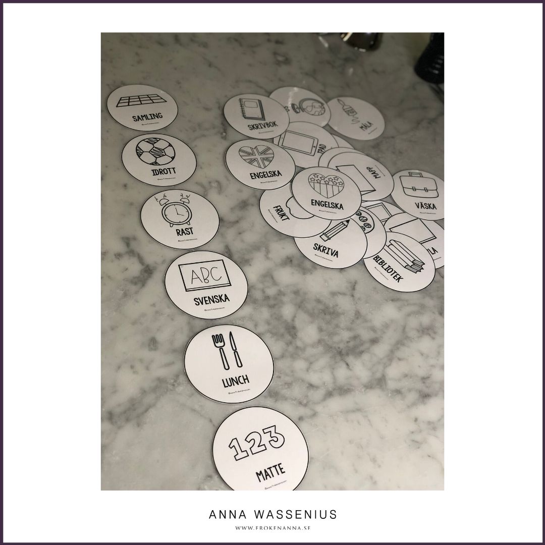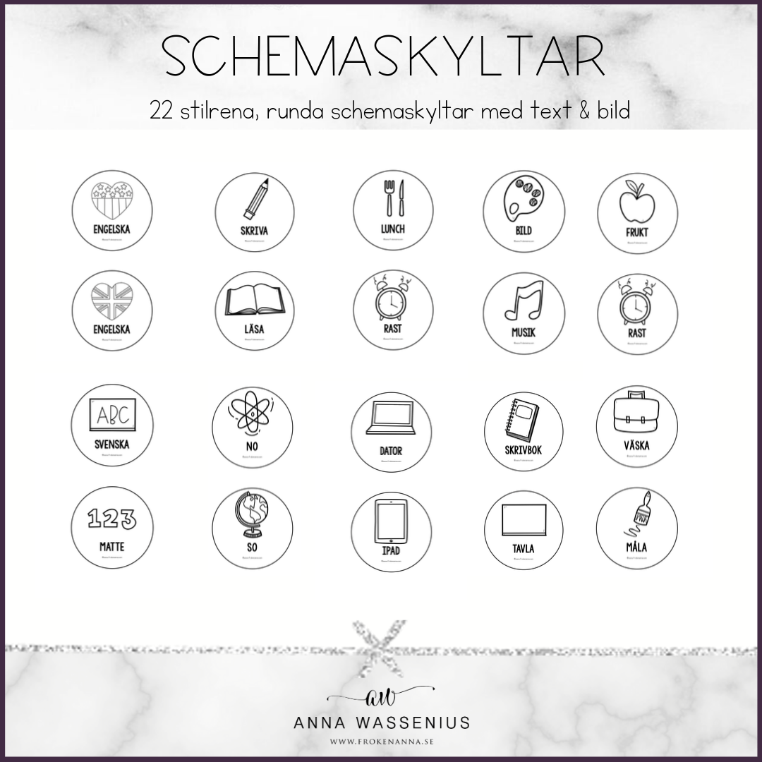 21 stilrena, runda schemabilder till klassrummet med text och bildstöd.