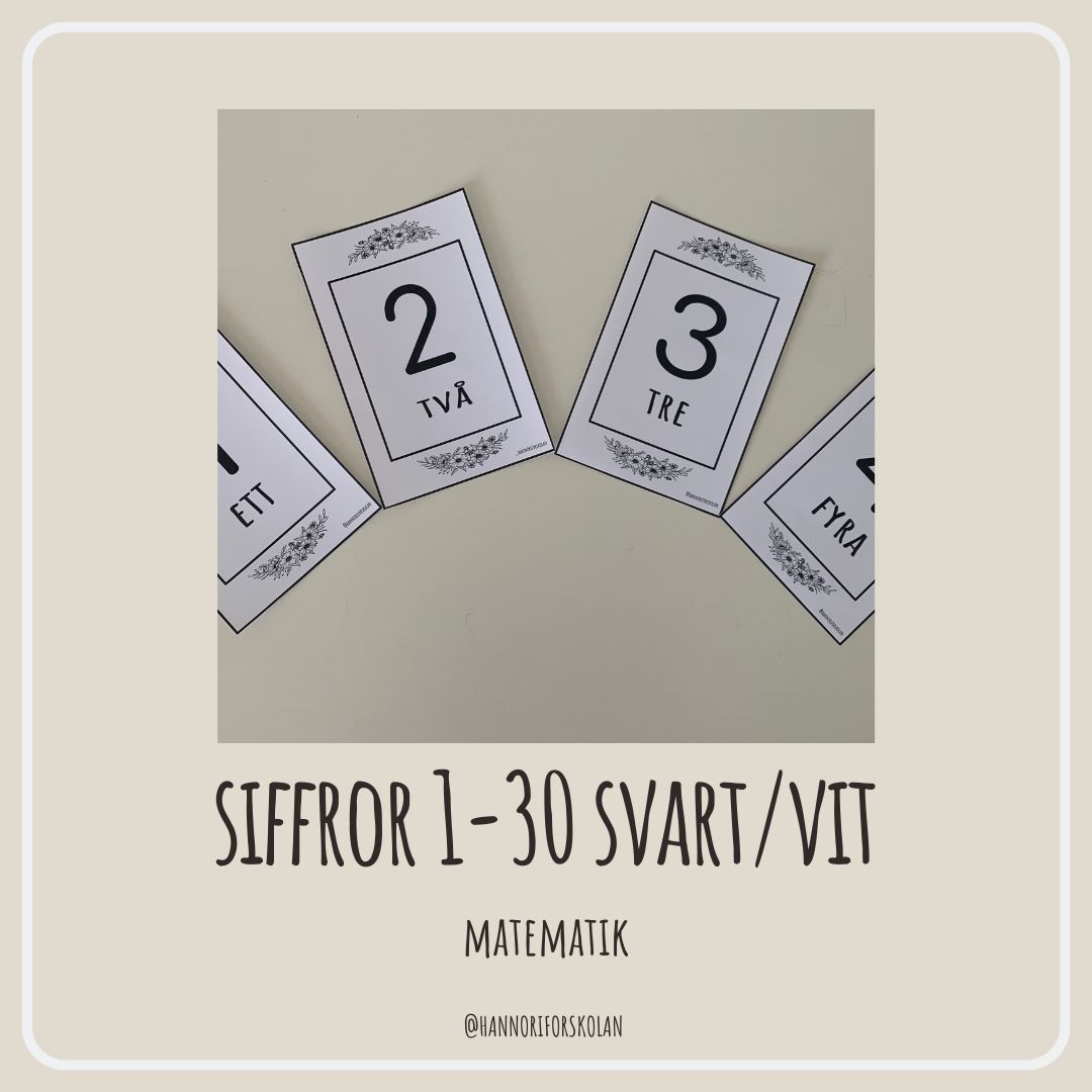 Siffror 1-30 – materialet går att sätta upp i den pedagogiska miljön eller använda i en matematiksamling. Varje siffra är ungefär 15x20cm.