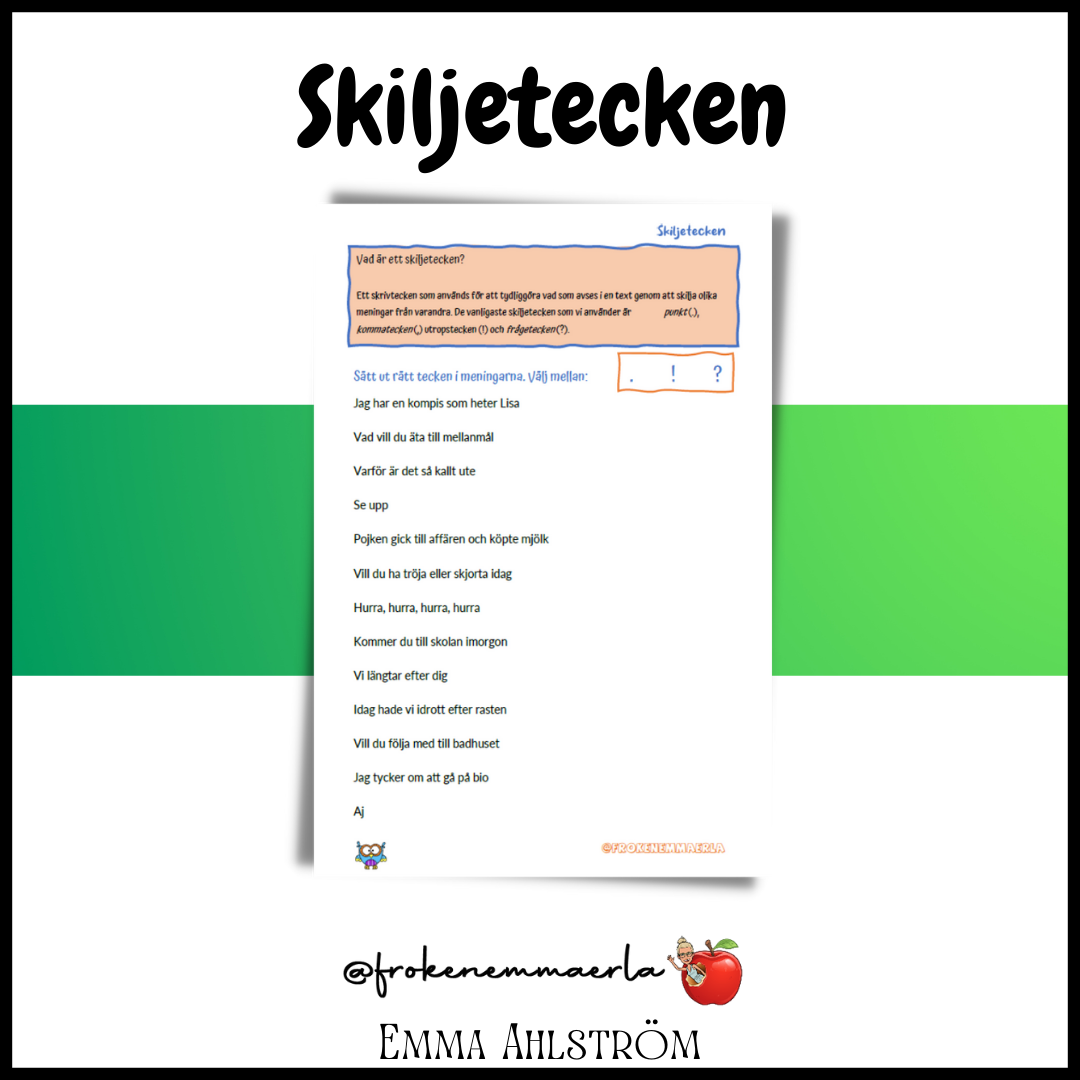 Öva på de vanligaste skiljetecken, punkt, utropstecken och frågetecken.