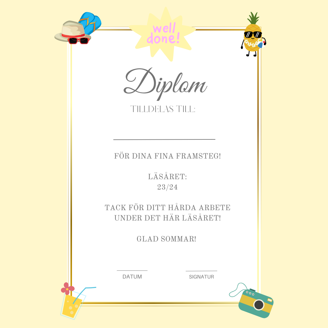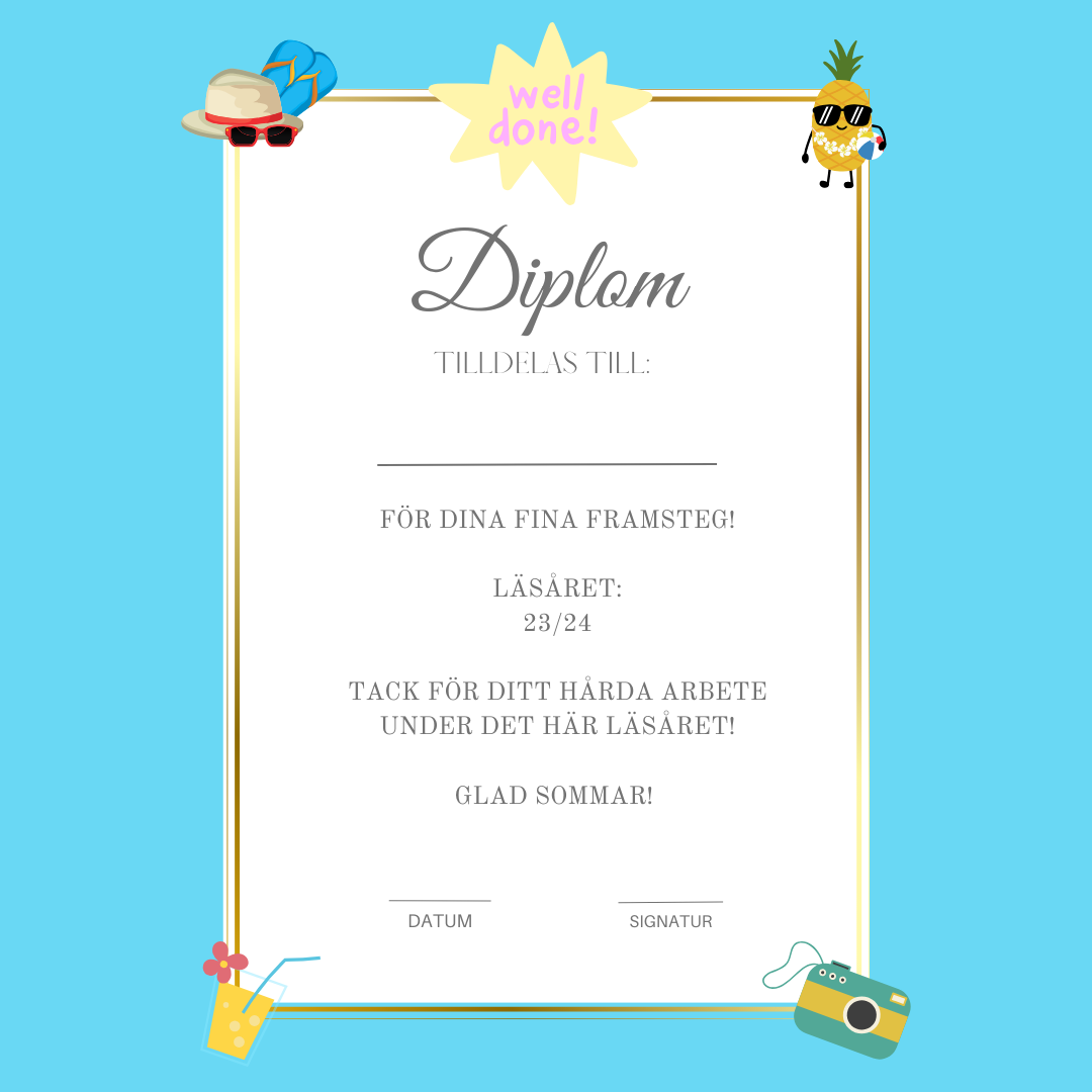Detta ingår i Skolavslutningsdiplom läsår 23/24- 4 olika färger