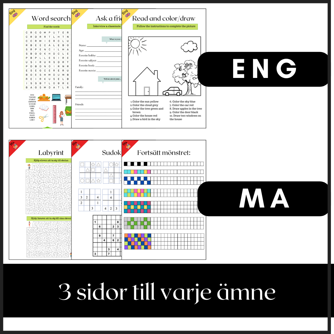 OBS! Detta är samma uppgifter som i den tidigare versionen, men materialet är anpassat till start läsår 23/24. Observera alltså att det inte är nya/andra uppgifter i detta häfte om du redan köpt den tidigare versionen!