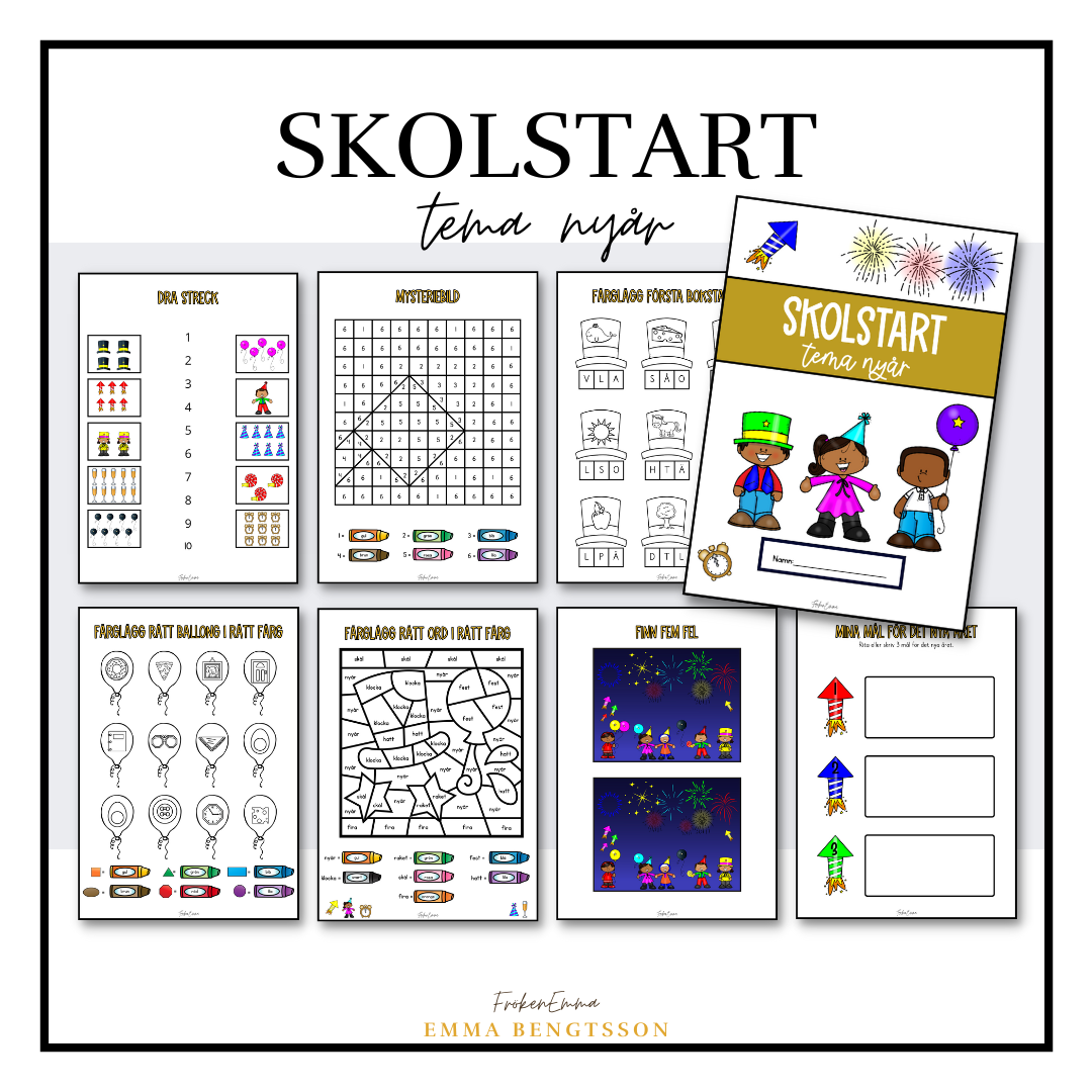 Arbetshäfte på 16 sidor som passar bra att använda som uppstarthäfte vid skolstarten i januari. Häftet innehåller blandade uppgifter i matematik, svenska och nyårsuppgifter. Passar bra för elever i åk F-1.