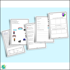 - Läs- och skrivövningar (fyll i ord, skriv meningar, rätt/fel-frågor)