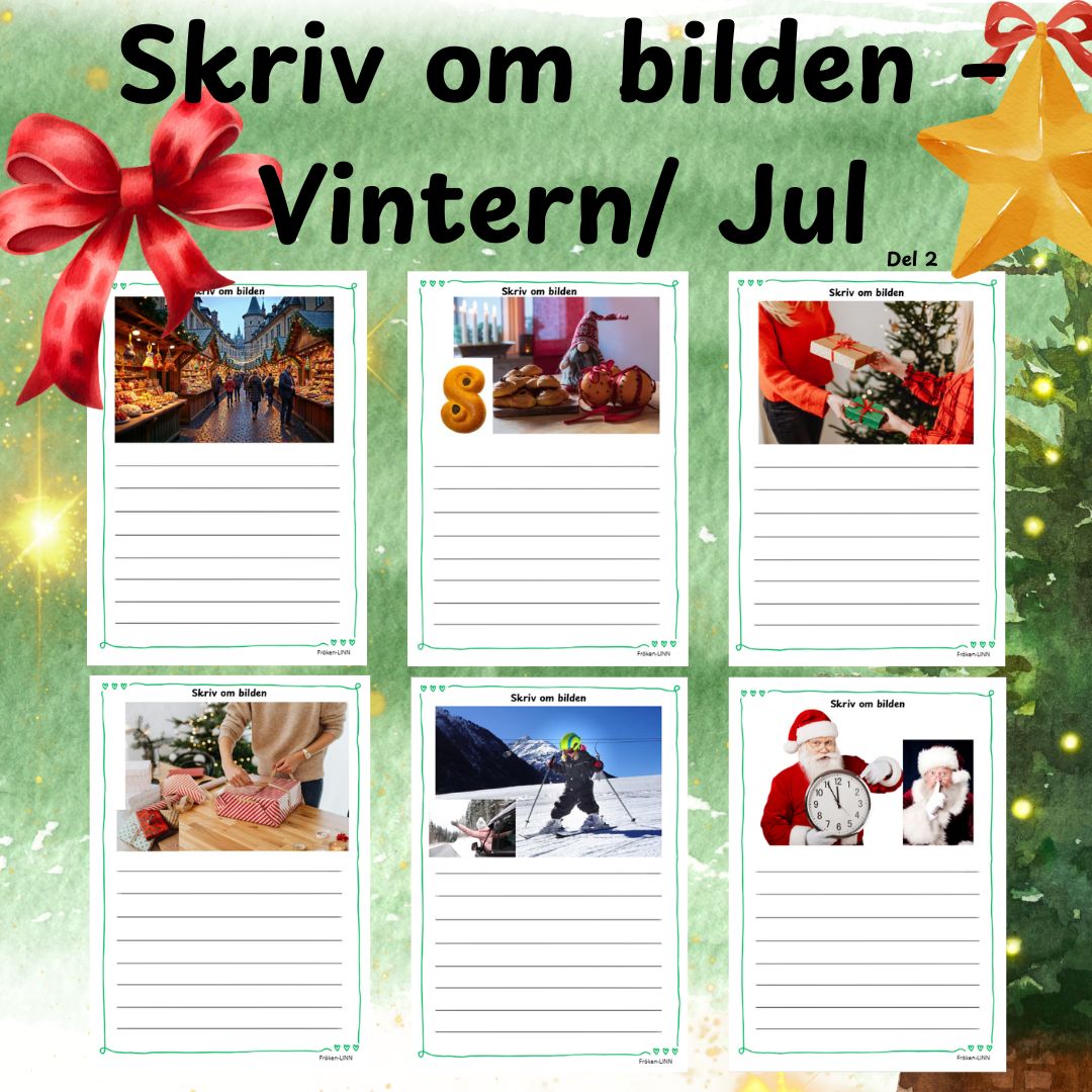 Varje arbetsblad innehåller en vinterbild som eleverna får beskriva med egna ord, vilket tränar både ordförråd, meningsbyggnad och muntlig förmåga.