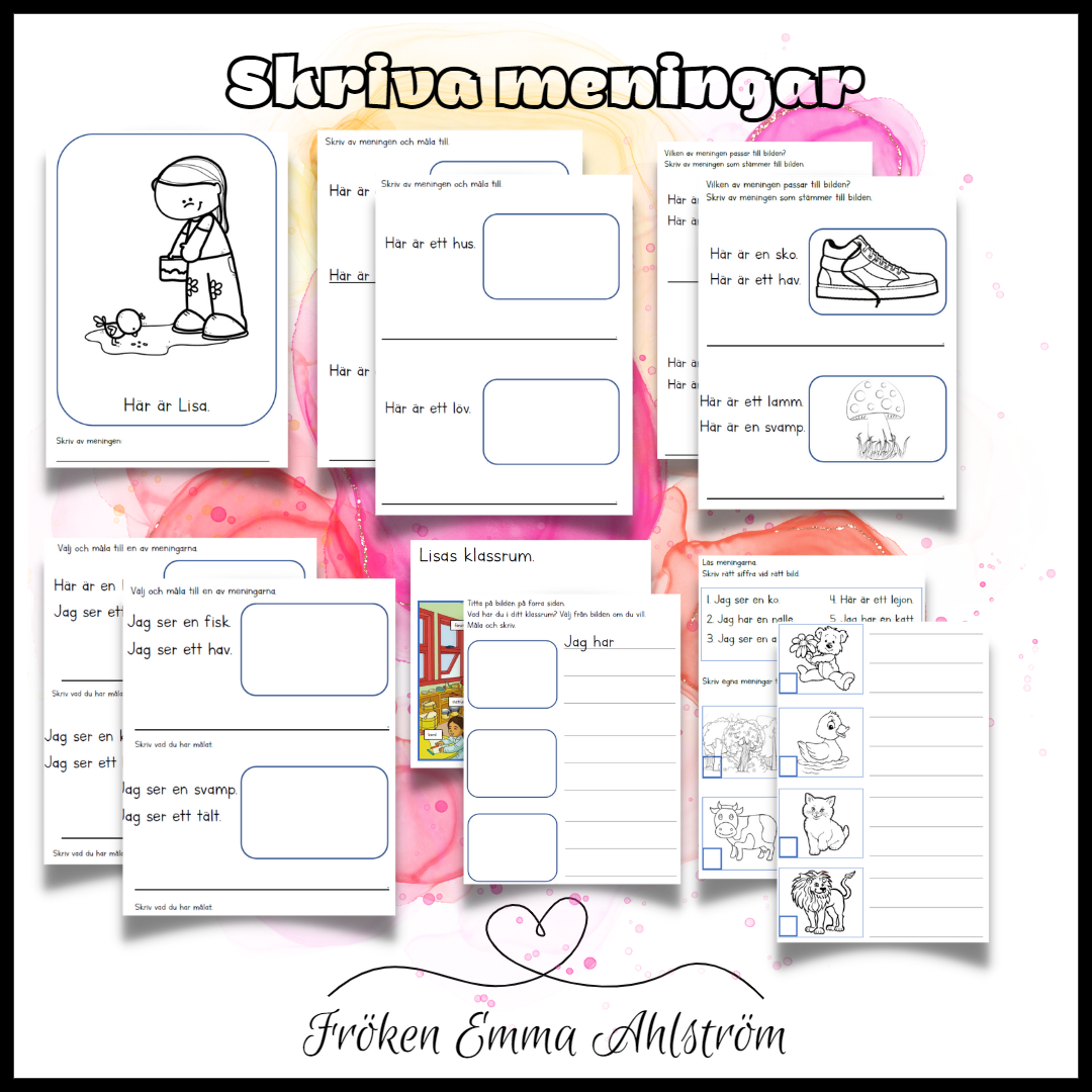 Ett arbetshäfte där eleverna introduceras i att skriva egna meningar.
