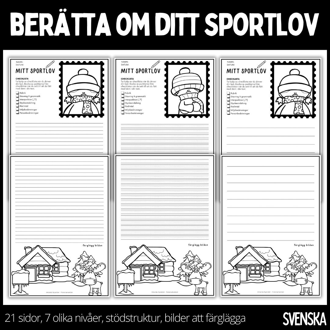 Detta ingår i Berätta om ditt sportlov - skrivmallar - 7 nivåer, 21 sidor - bilder att färglägga