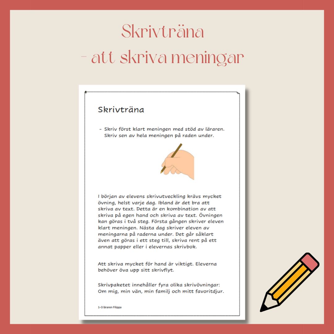Skrivpaketet innehåller fyra olika skrivövningar: