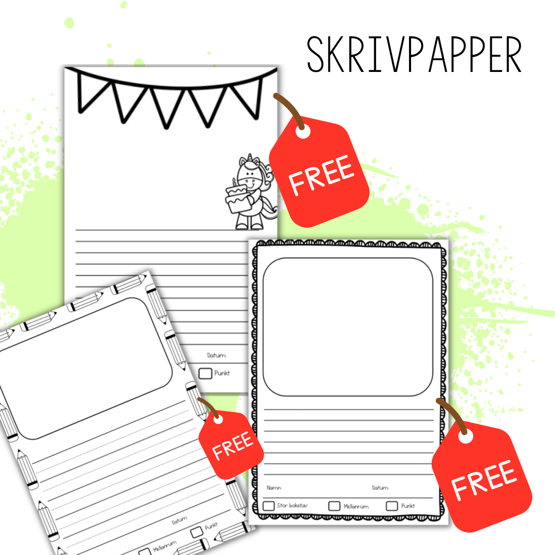 Varsågoda att ladda ner kostnadsfritt olika skrivpapper eleverna kan skriva sina sagor eller annat på.