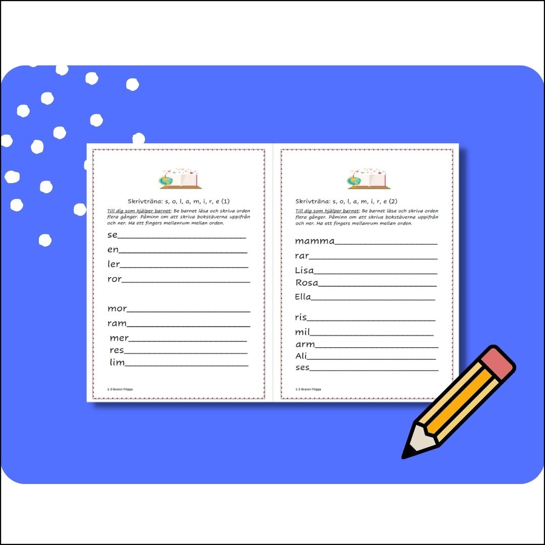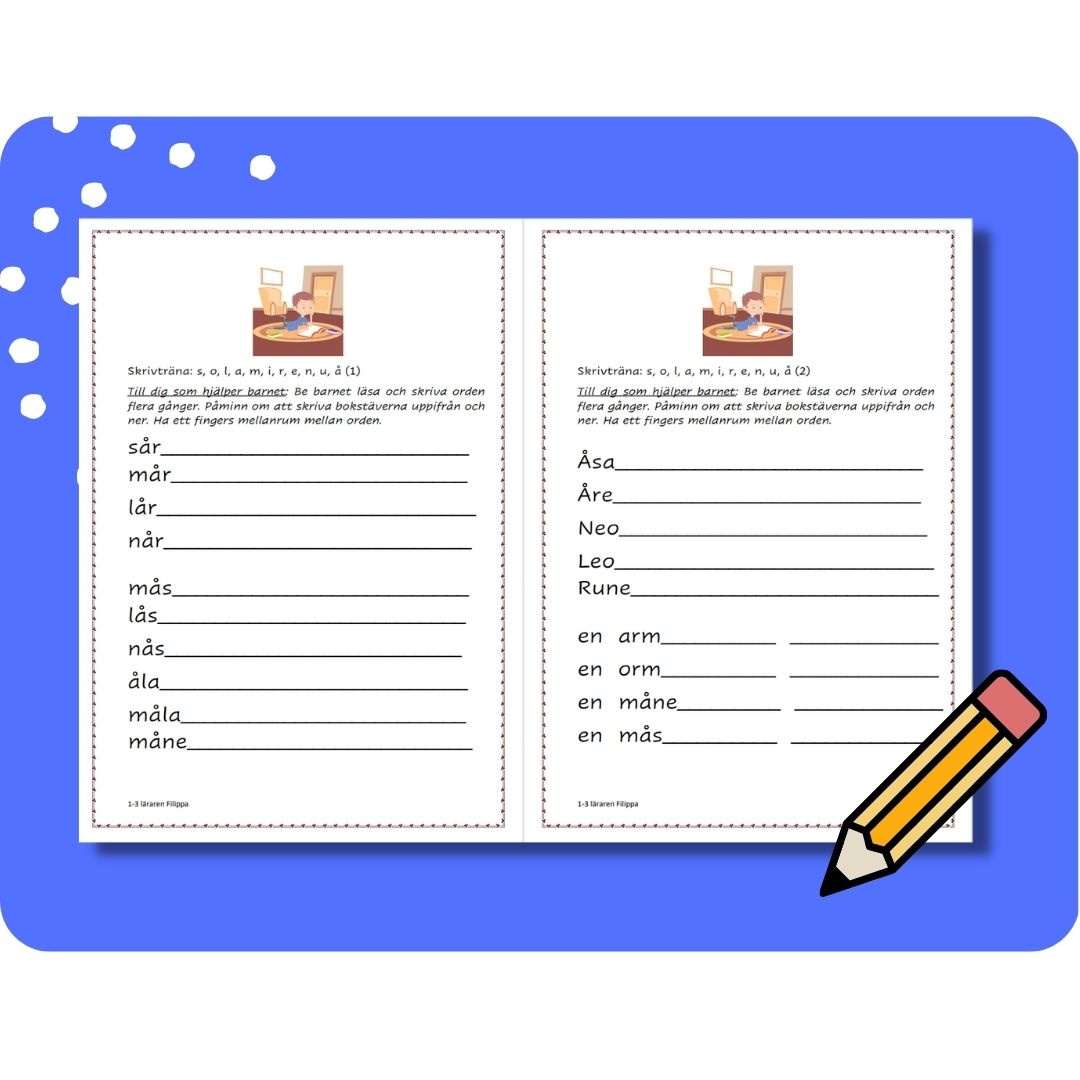10 stycken skrivträningsblad för år 1 som även passar som skrivläxa.